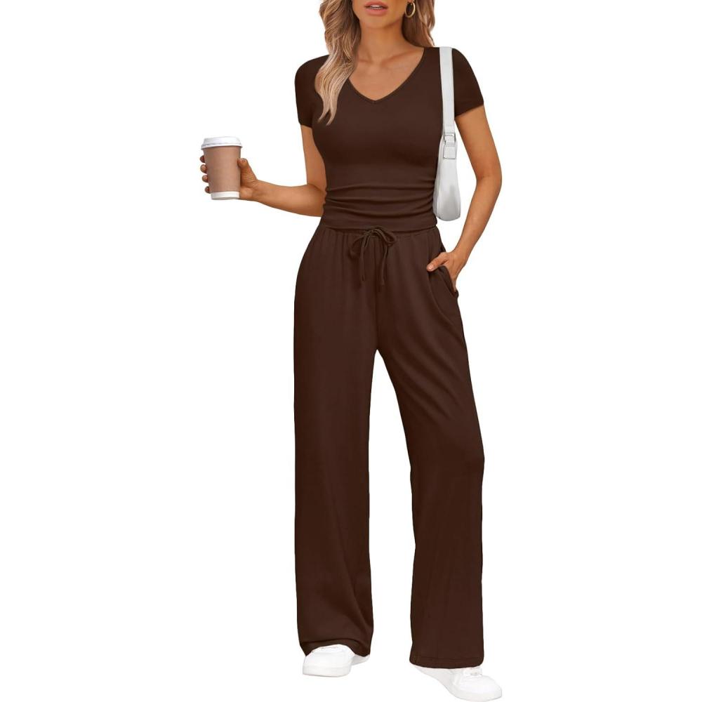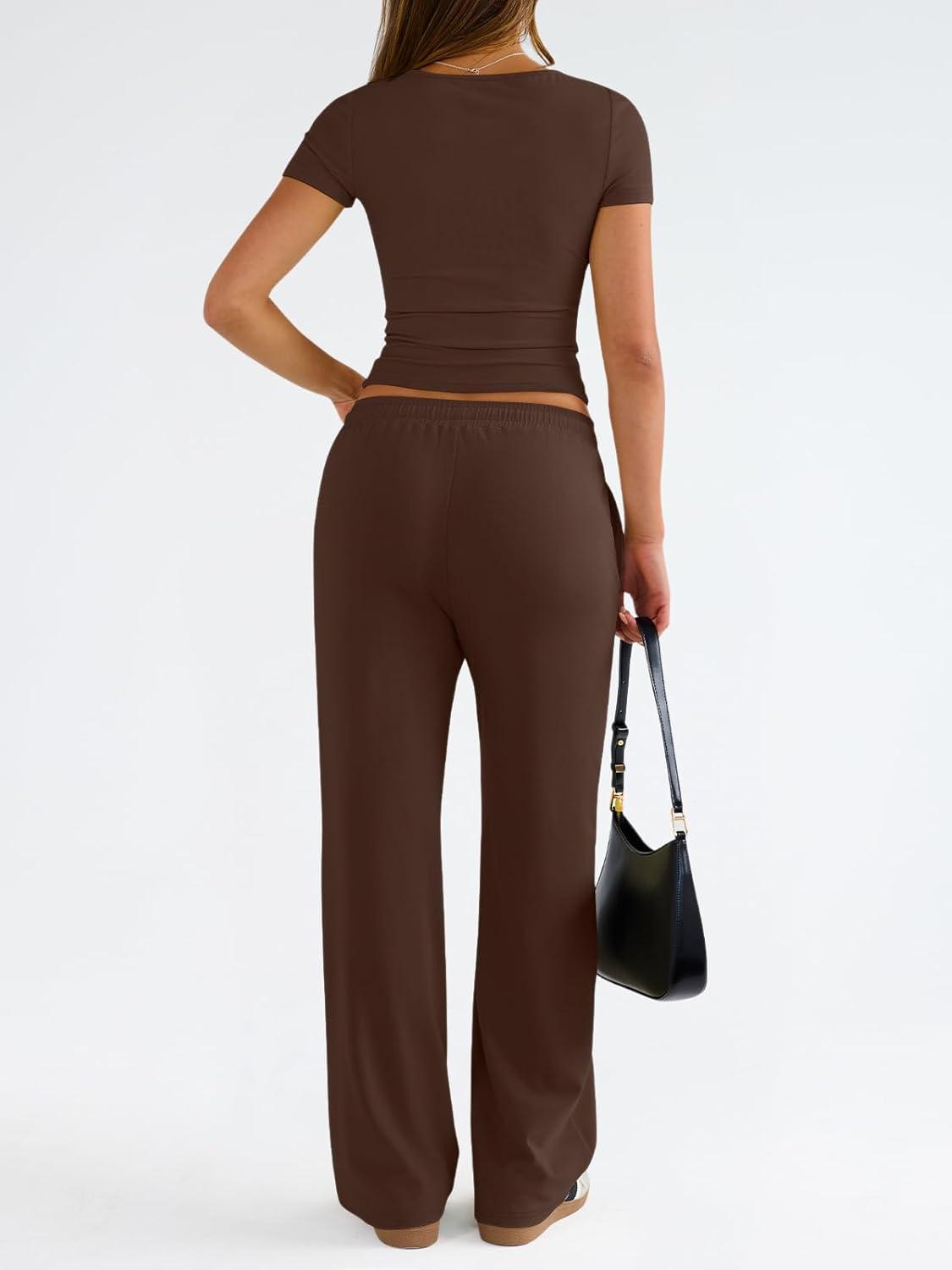 Trendy Queen 2 Piece Lounge Sets for Women Summer Outfits 2026 Fashion Two Piece Loungewear Spring Outfits Clothes(Cocoa)