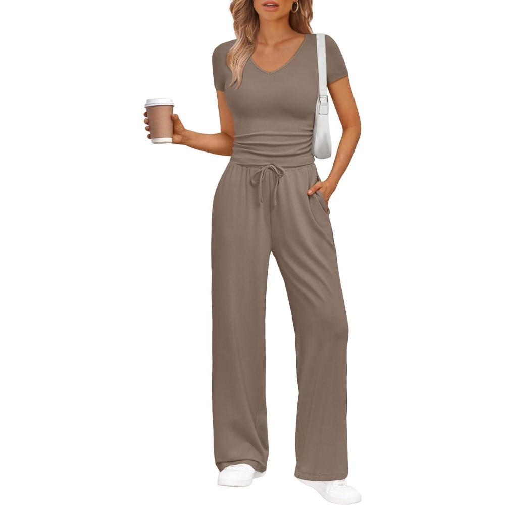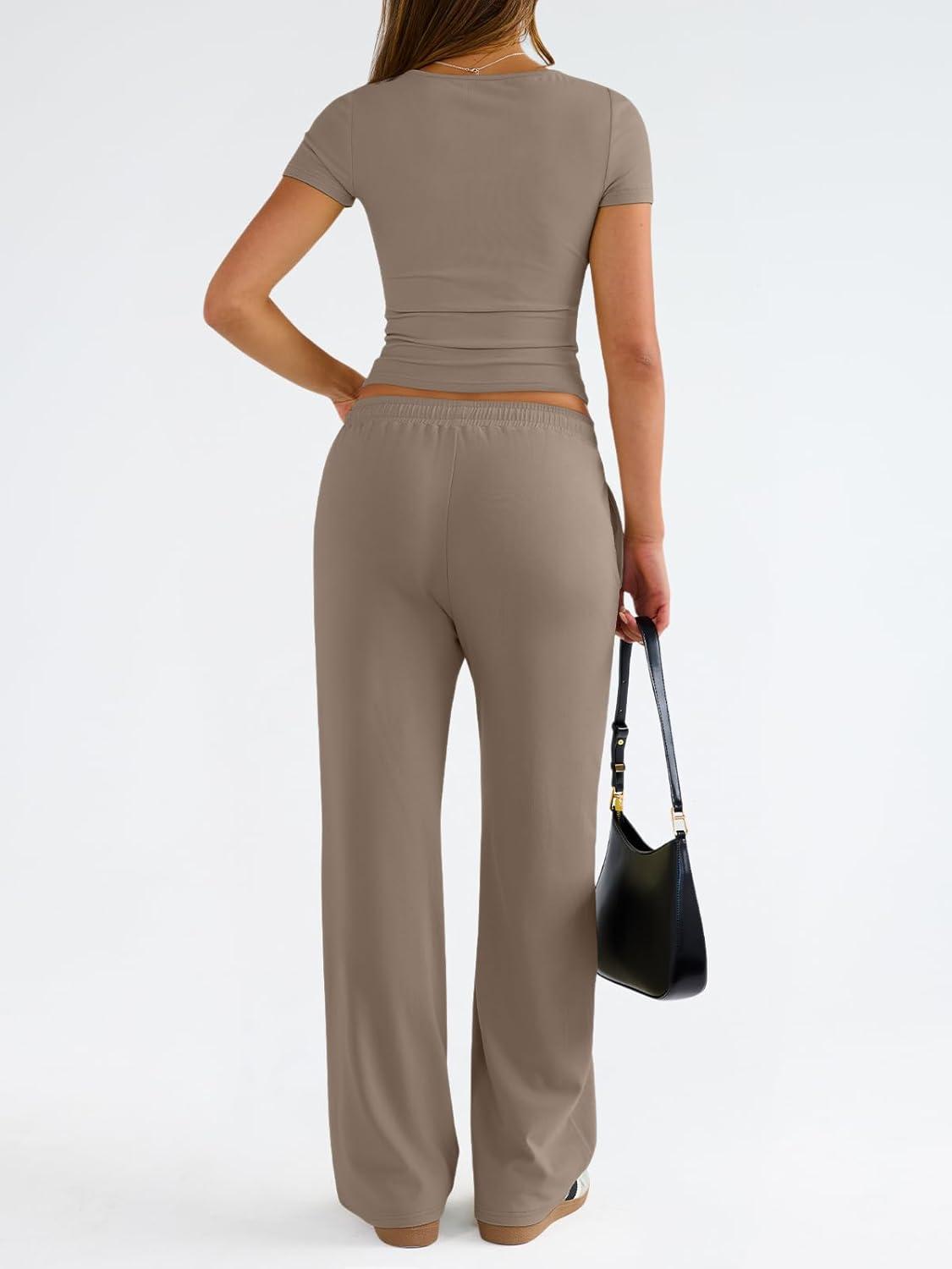 Trendy Queen 2 Piece Lounge Sets for Women Summer Outfits 2026 Fashion Two Piece Loungewear Spring Outfits Clothes(Mocha)