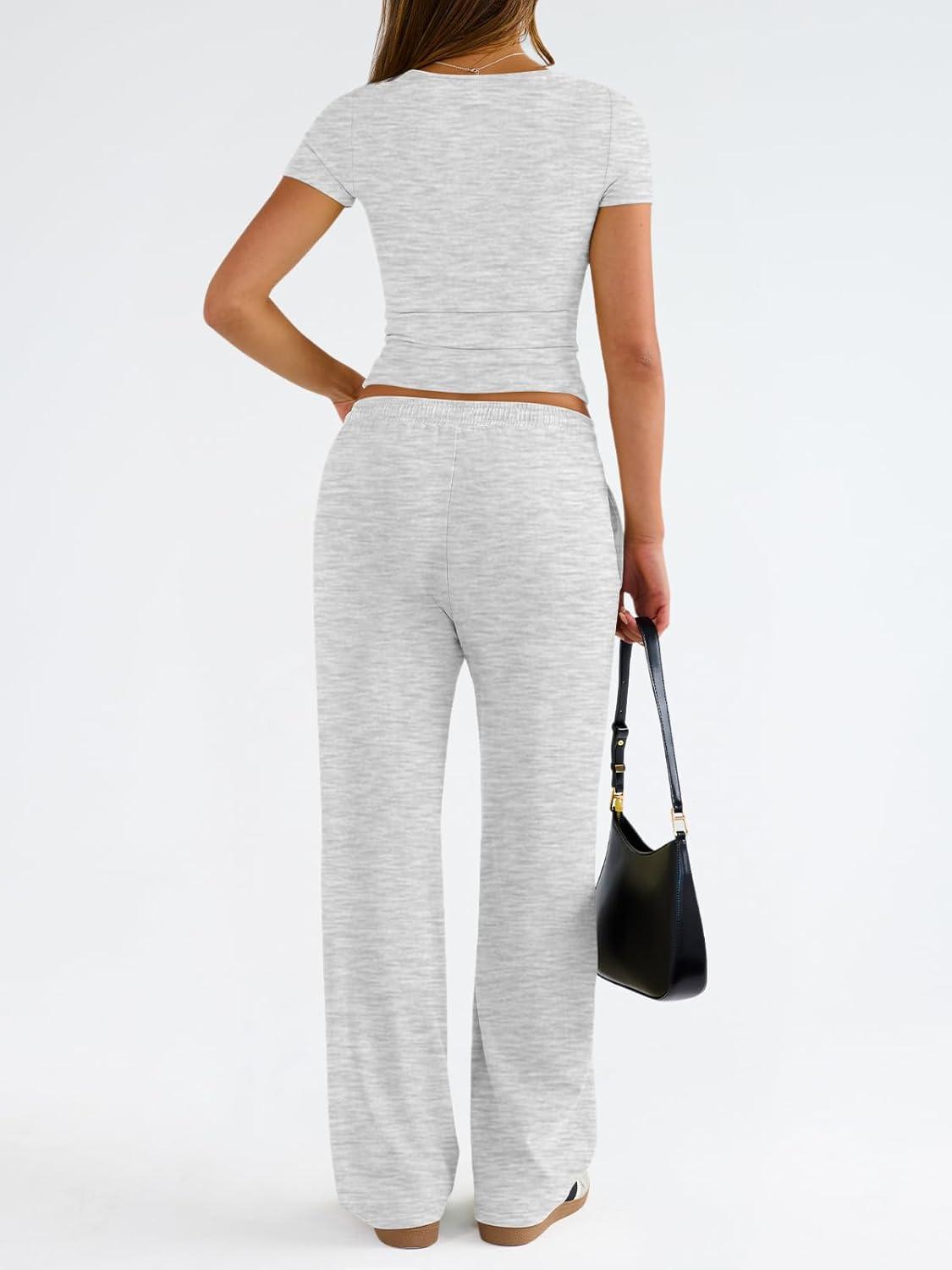 Trendy Queen 2 Piece Lounge Sets for Women Summer Outfits 2026 Fashion Two Piece Loungewear Spring Outfits Clothes(Oatmeal Grey)