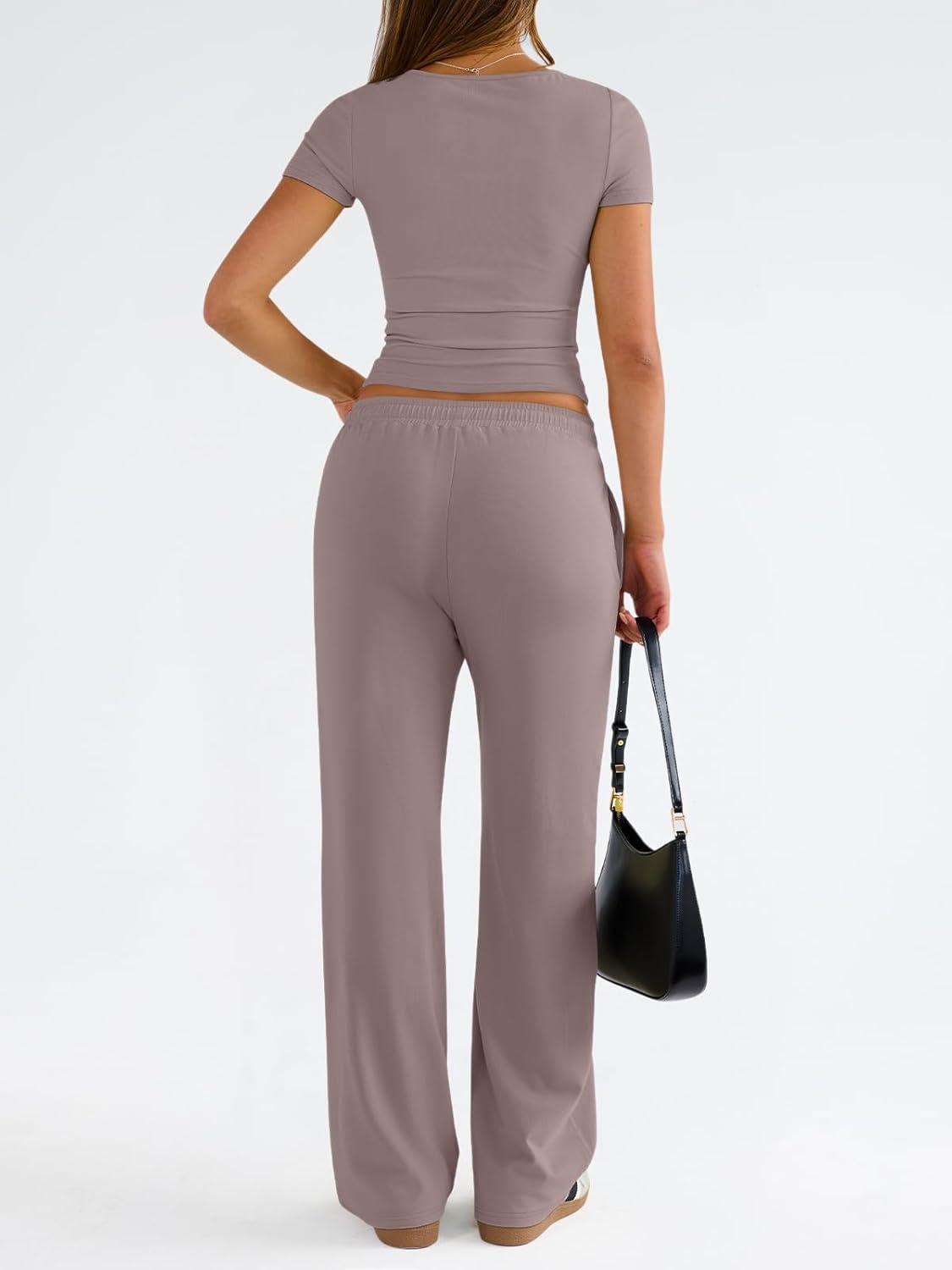 Trendy Queen 2 Piece Lounge Sets for Women Summer Outfits 2026 Fashion Two Piece Loungewear Spring Outfits Clothes(Rose Taupe)