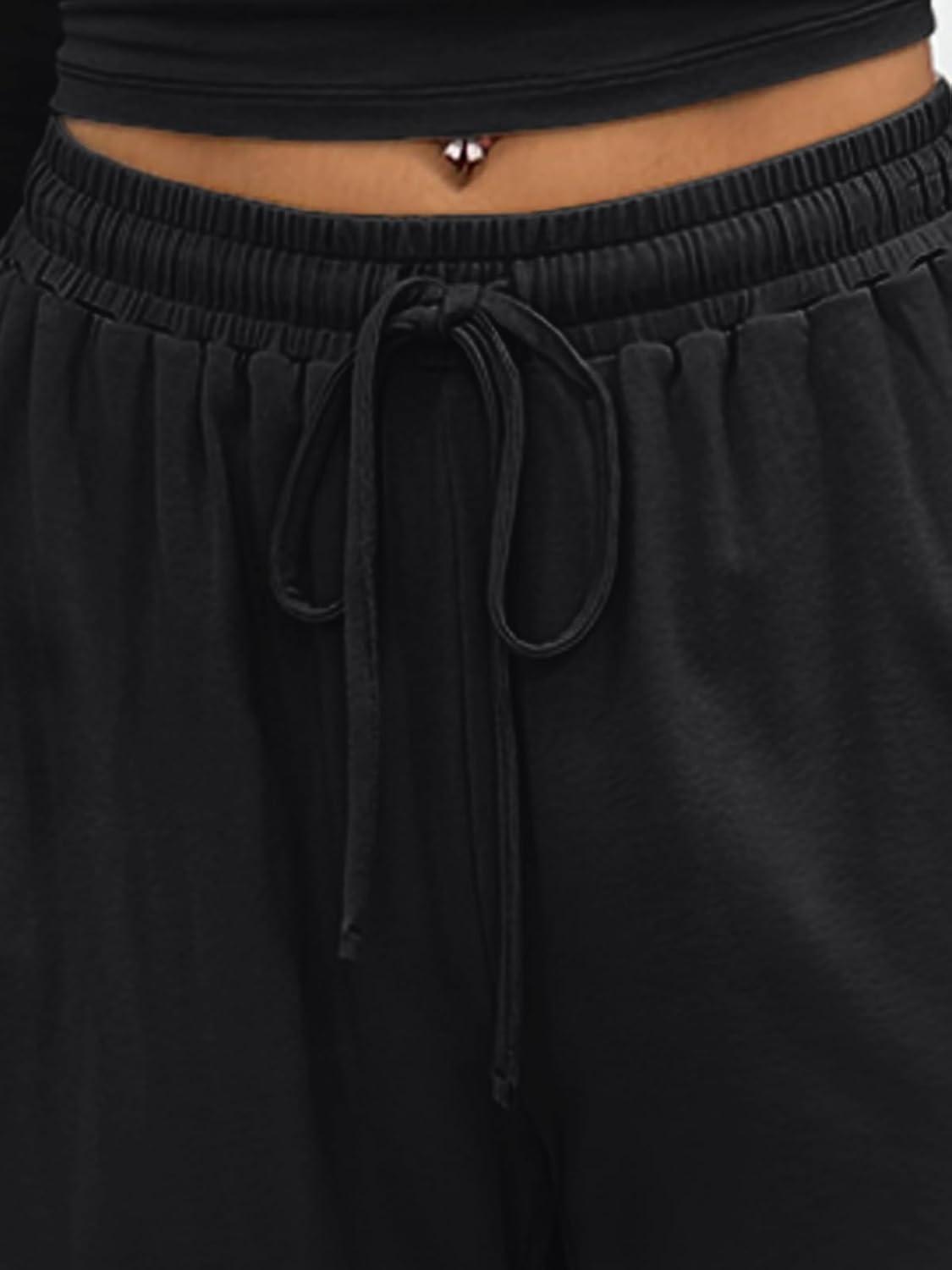 Trendy Queen 2 Piece Off Shoulder Set Womens Wide Leg Pants Side Ruching Slightly Crop Top Sets(Black)