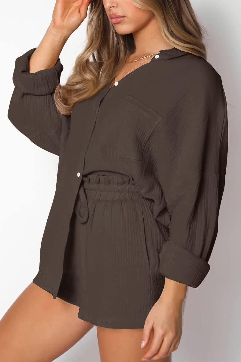 Trendy Queen 2 Piece Sets For Women Lounge Wear Pajama Matching Long Sleeve Two Piece Spring Outfits Fashion Tracksuit 2025(Brown)