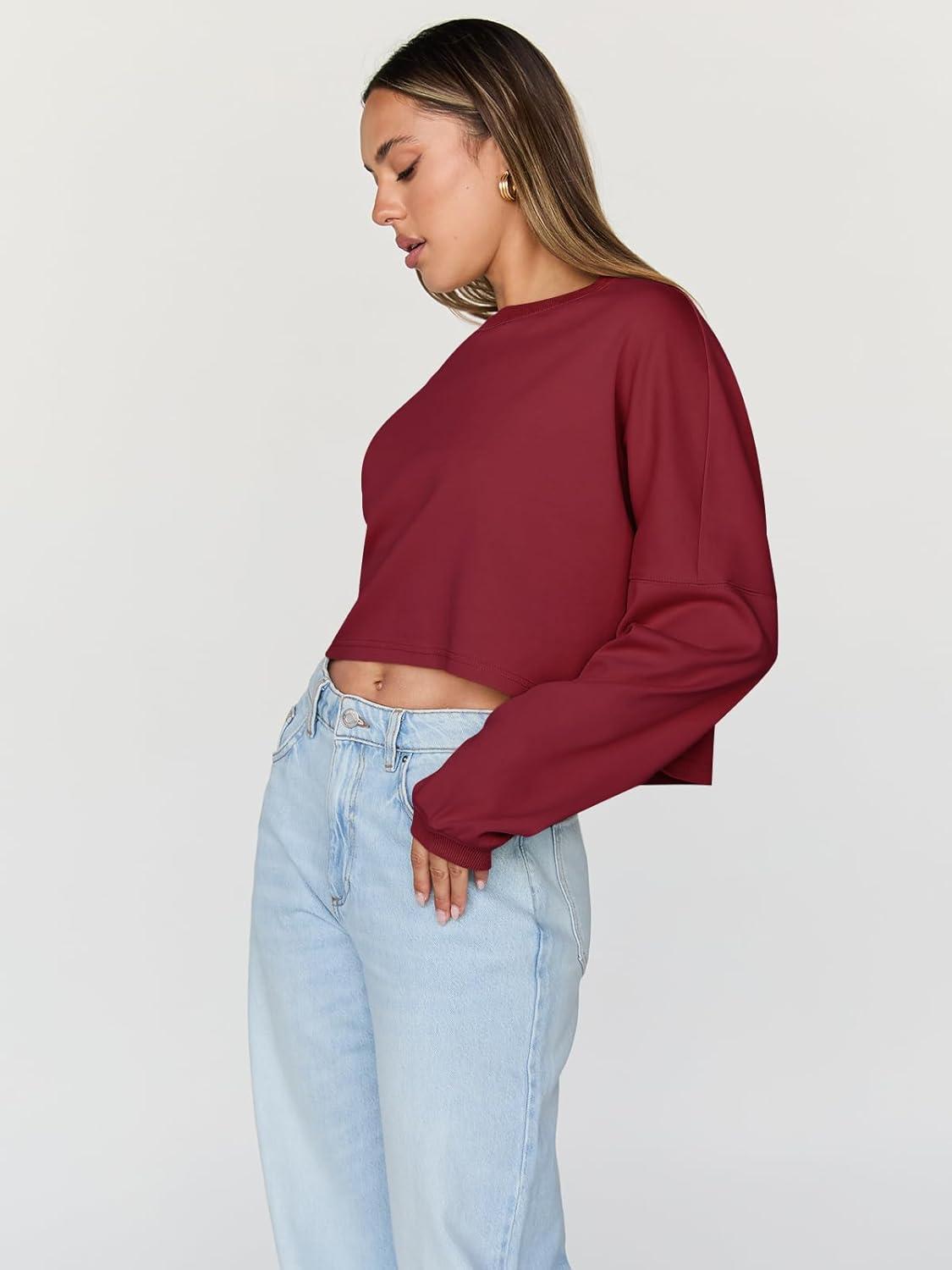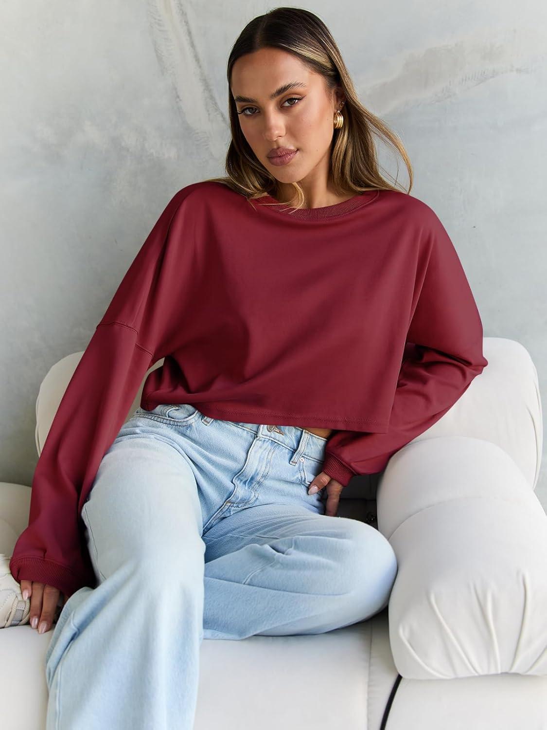 Get a free gift with your purchase of Trendy Queen Cropped Sweatshirts for Women Oversized Crewneck Sweaters Long Sleeve Tops Fall Winter Clothes 2025(Burgundy). Limited quantities available!