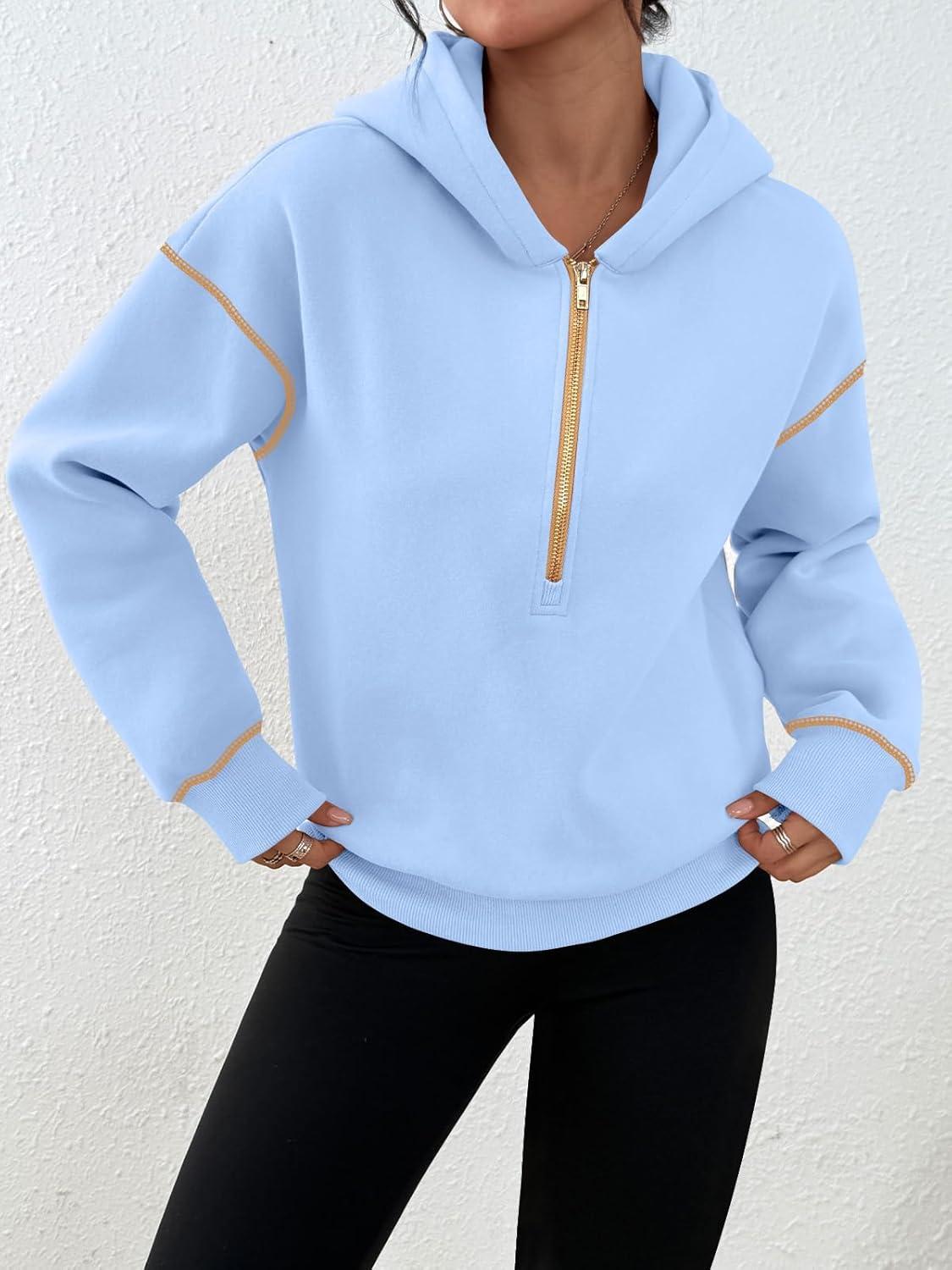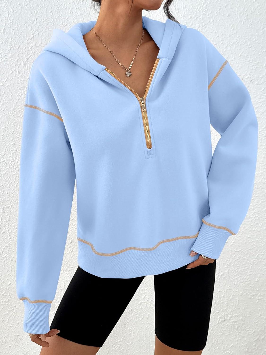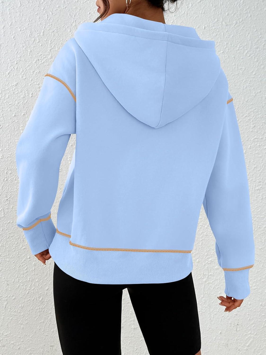 Trendy Queen Half Zip Pullover Hoodies for Women Y2k Cute Cropped Sweatshirts Jackets Fall Fashion 2025 Outfits Clothing(Sky Blue)