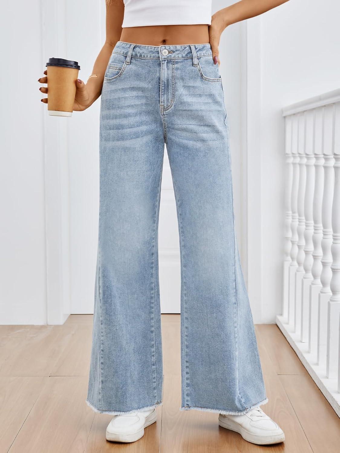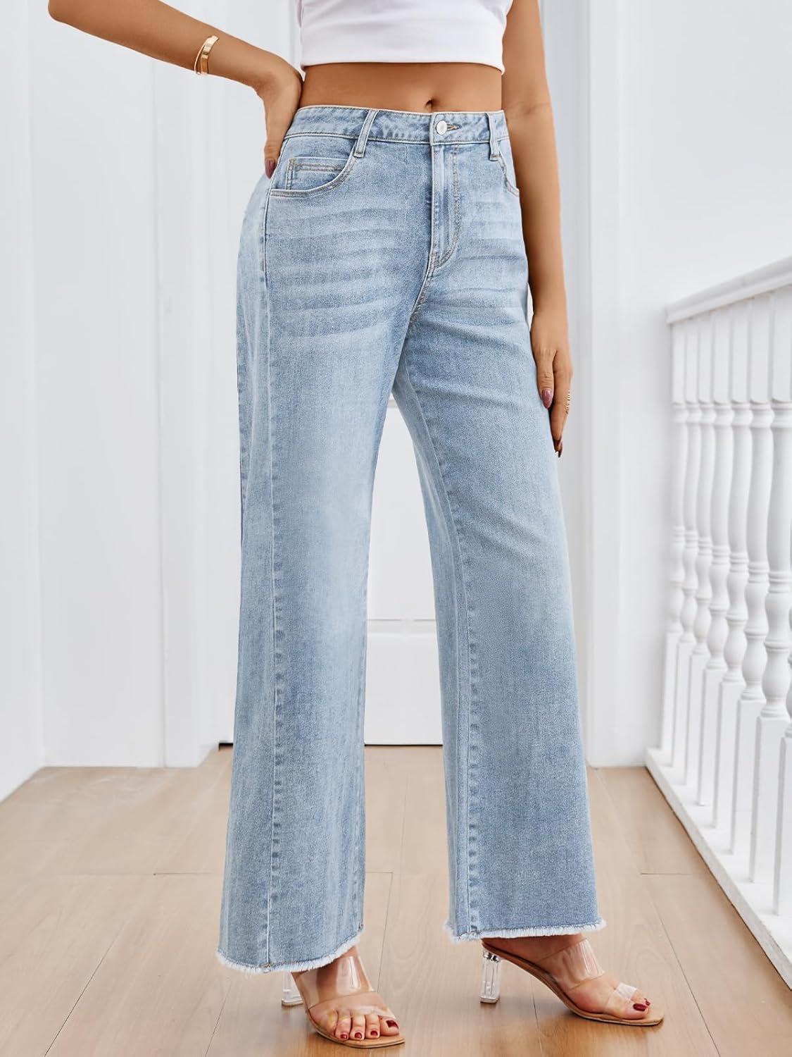 Trendy Queen Jeans for Women High Waisted Wide Straight Leg Stretchy Baggy Jeans Fashion Loose Denim Pants Fall 2025(Light Blue)