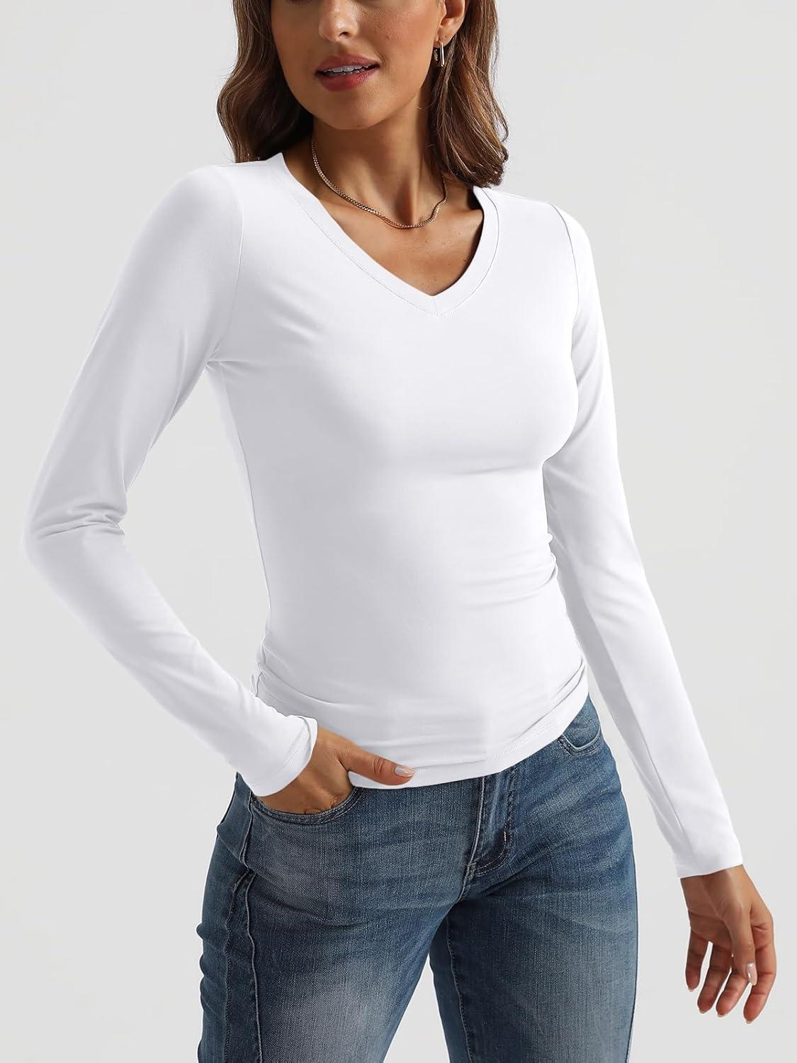Get your hands on our newest Trendy Queen Long Sleeve Shirts for Women 2025 Fall Fashion V Neck Basics Crop Tops Slim Fitted Y2K Tops Outfits Clothes(White) and enjoy a limited-time discount offer.
