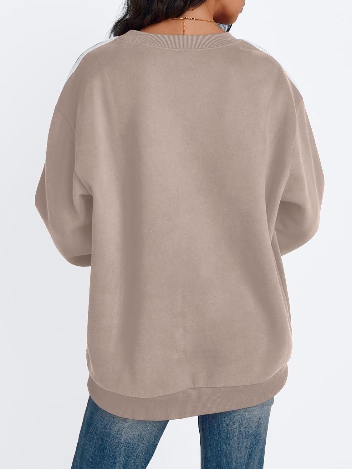 Trendy Queen Oversized Sweatshirt for Women Crewneck Fall Fashion Clothes 2025 Striped Sweater y2k Teen Girls Outfits(Coffeegrey)