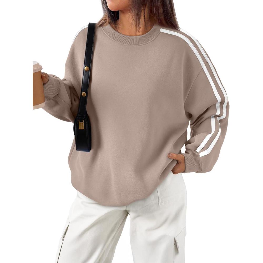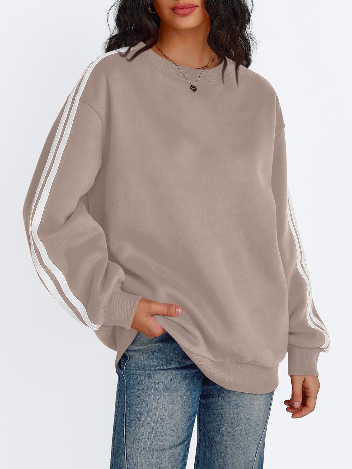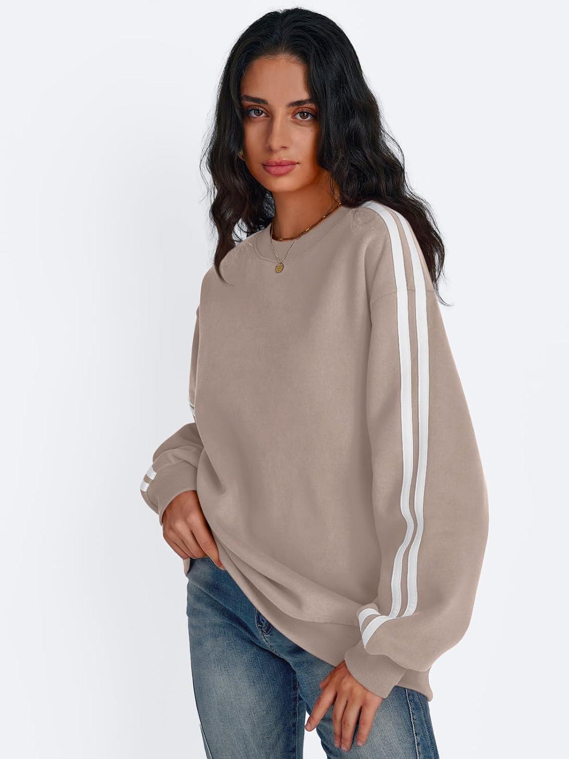 Don’t miss out on our limited-time offer: buy Trendy Queen Oversized Sweatshirt for Women Crewneck Fall Fashion Clothes 2025 Striped Sweater y2k Teen Girls Outfits(Coffeegrey), get {accessory} free!
