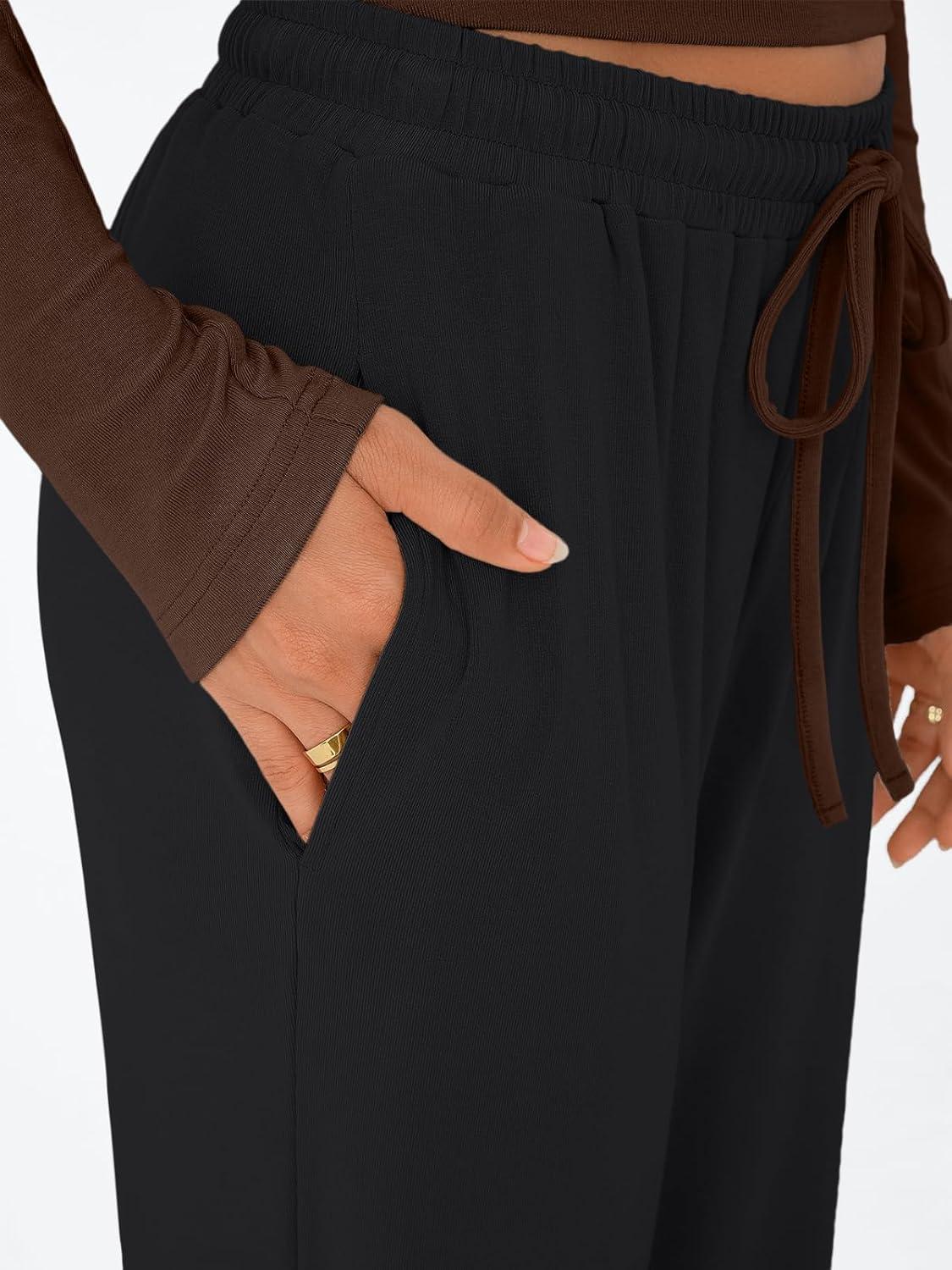 Trendy Queen Women’s 2 Piece Matching Lounge Set Long Sleeve Slightly Crop Top Wide Leg Pants Casual Sweatsuit(Coffee Black)