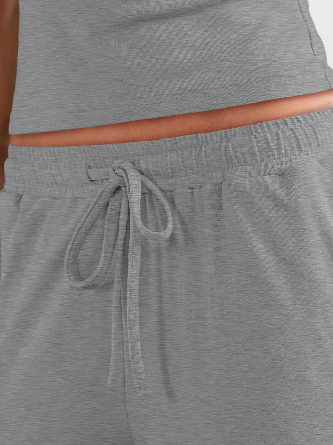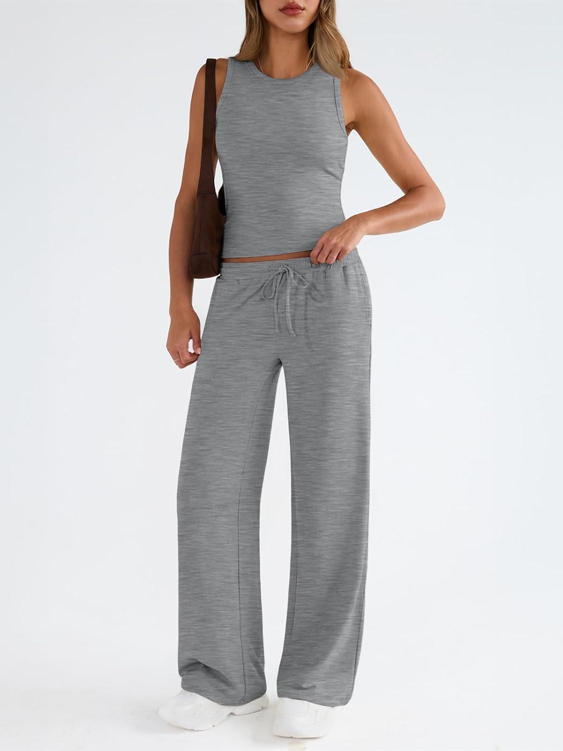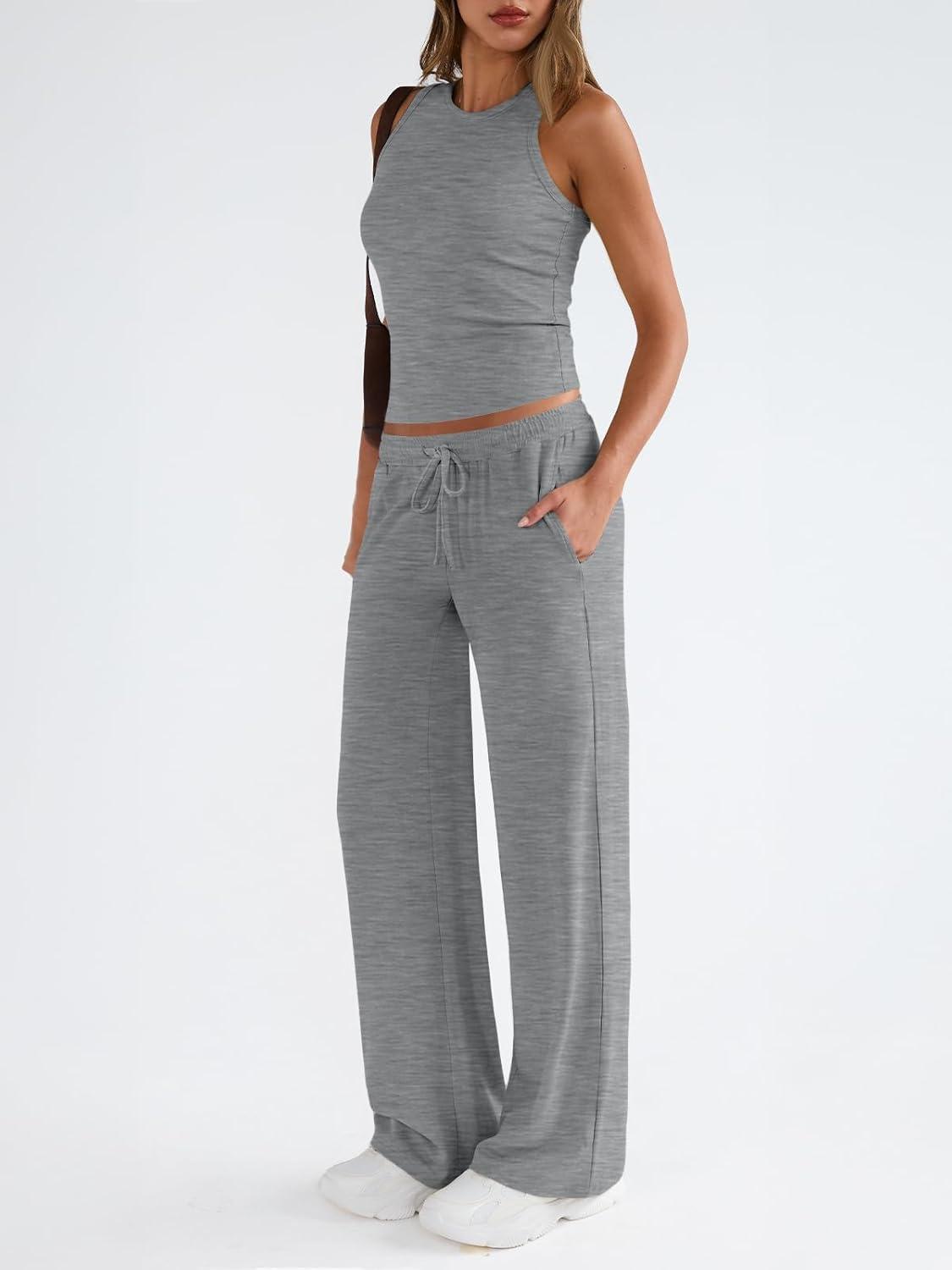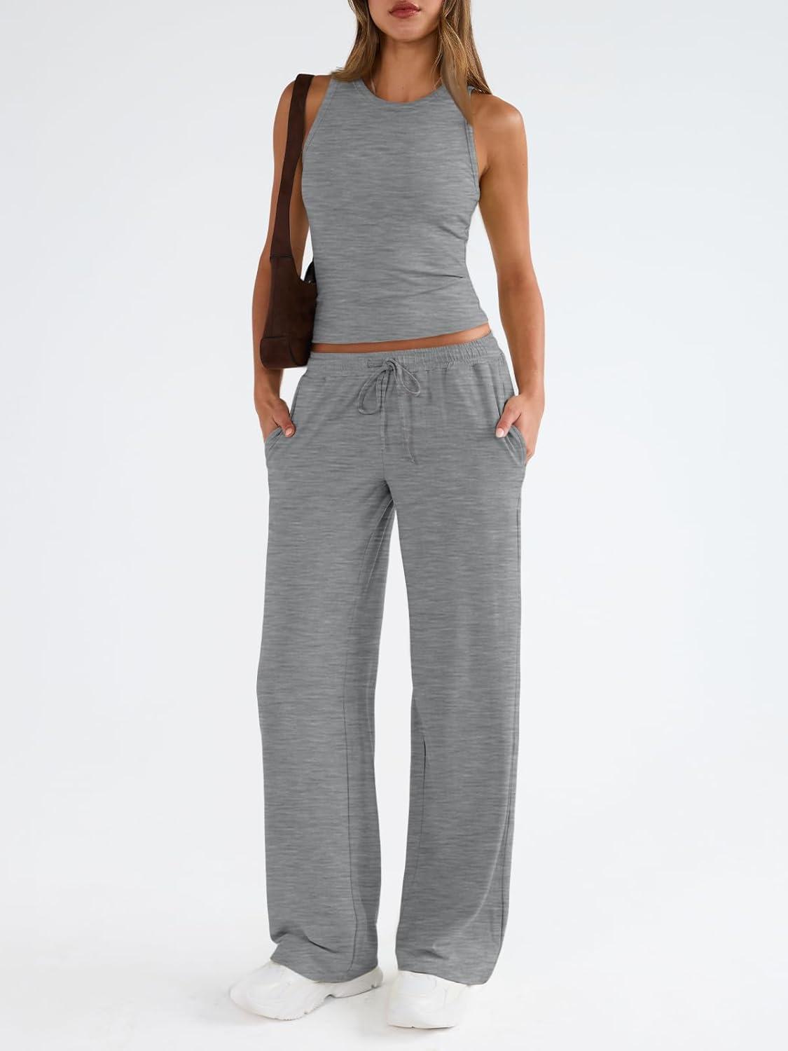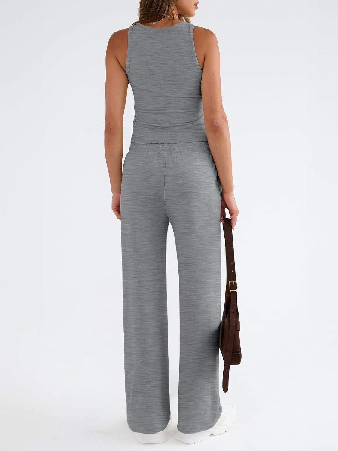 Trendy Queen Womens 2 Piece Outfits Sweatsuit Lounge Sets Sleeveless Tank Tops Summer Vacation Wide Leg Pants Tracksuits(Grey)