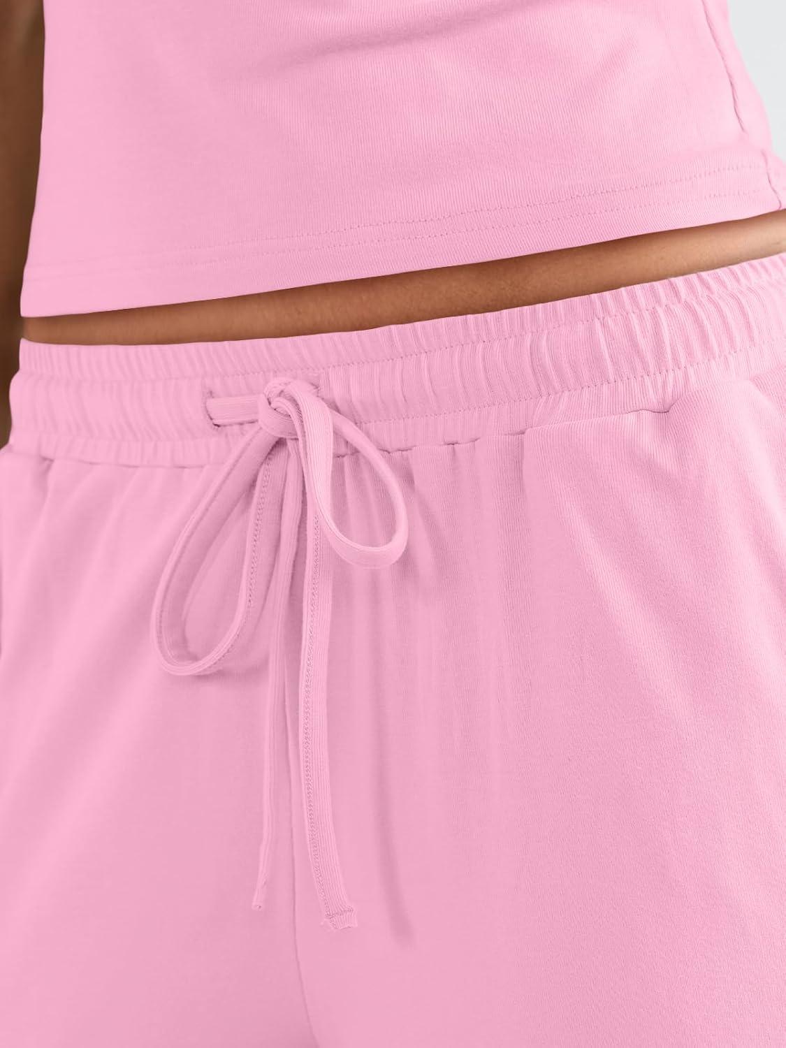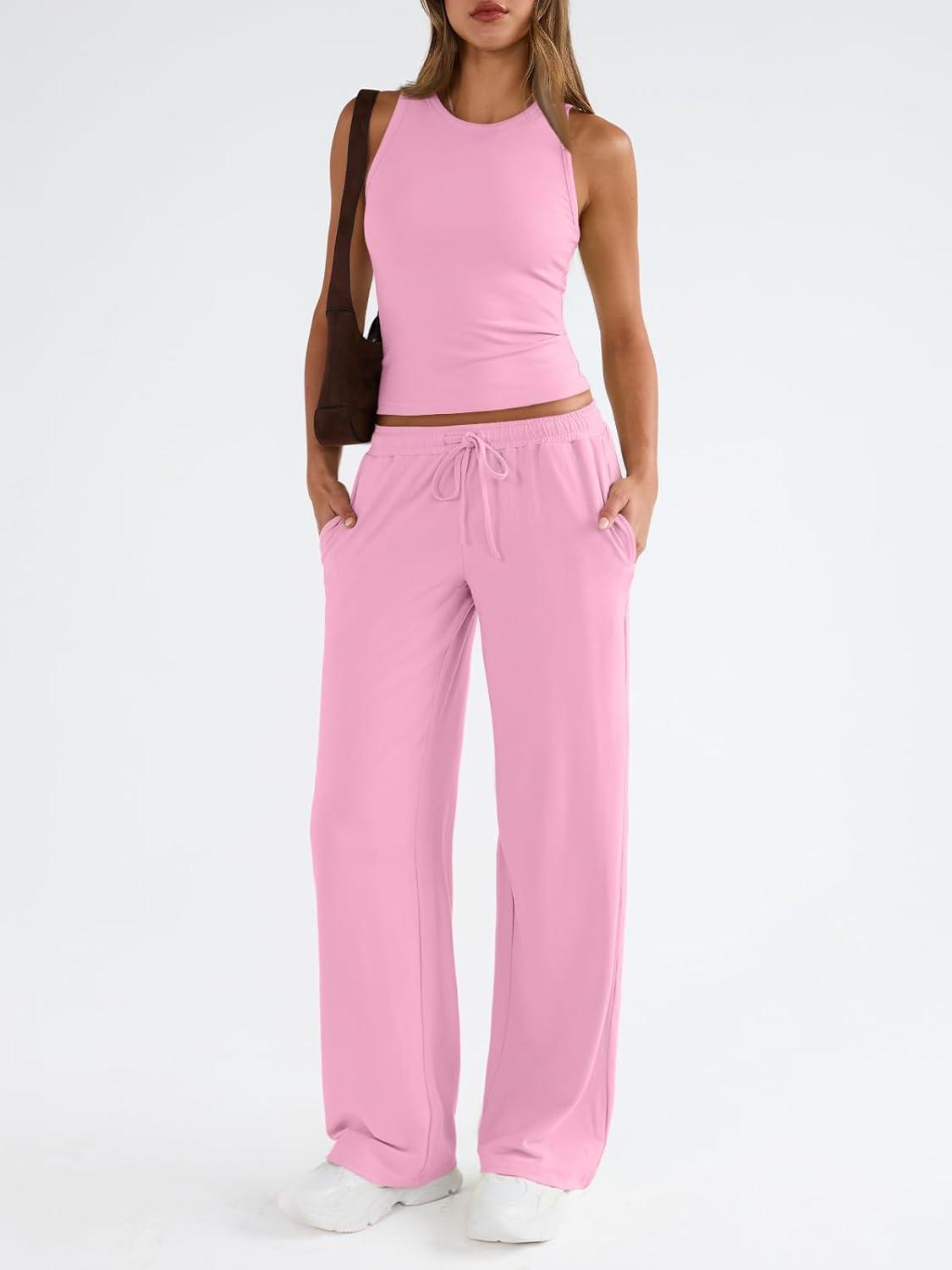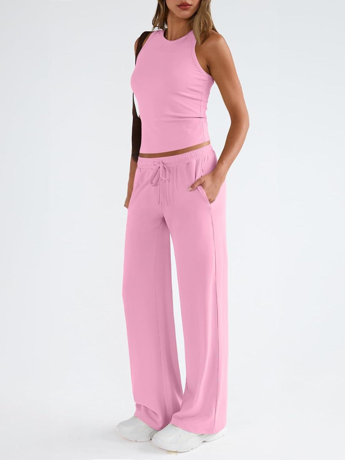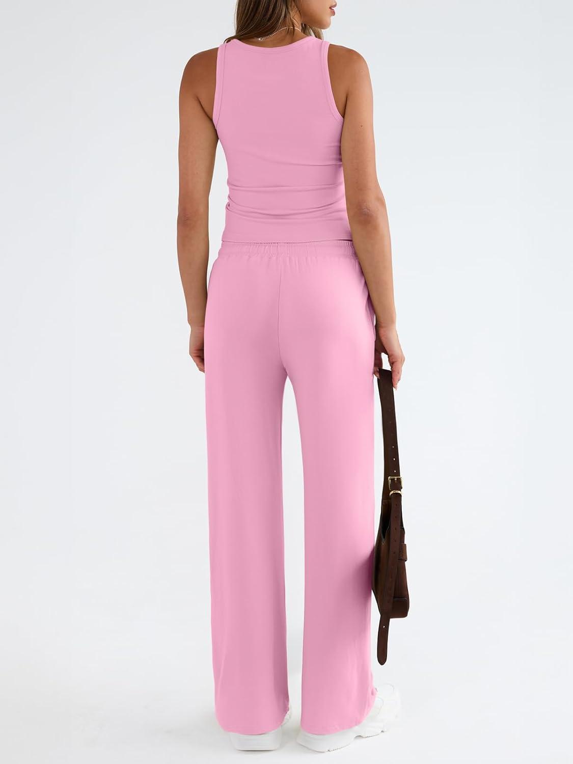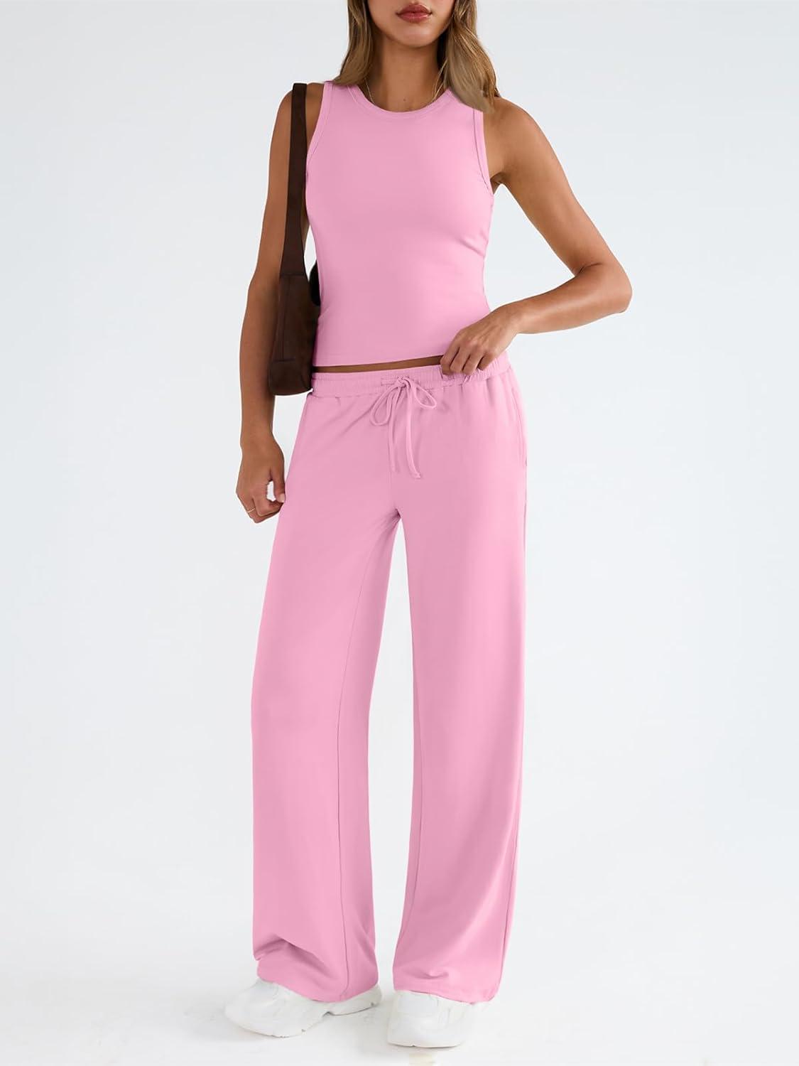 Trendy Queen Womens 2 Piece Outfits Sweatsuit Lounge Sets Sleeveless Tank Tops Summer Vacation Wide Leg Pants Tracksuits(Pink)