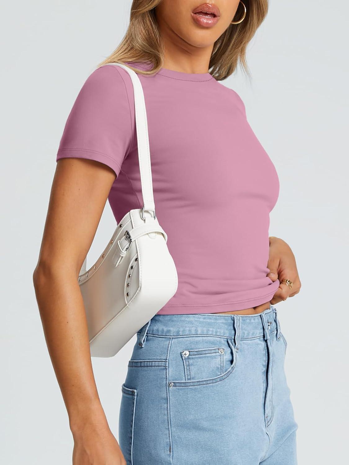 Trendy Queen Womens Basic T Shirts Summer Tops 2025 Crop Short Sleeve Slim Fit Tee Cute Gym Workout Clothes(Mauve)