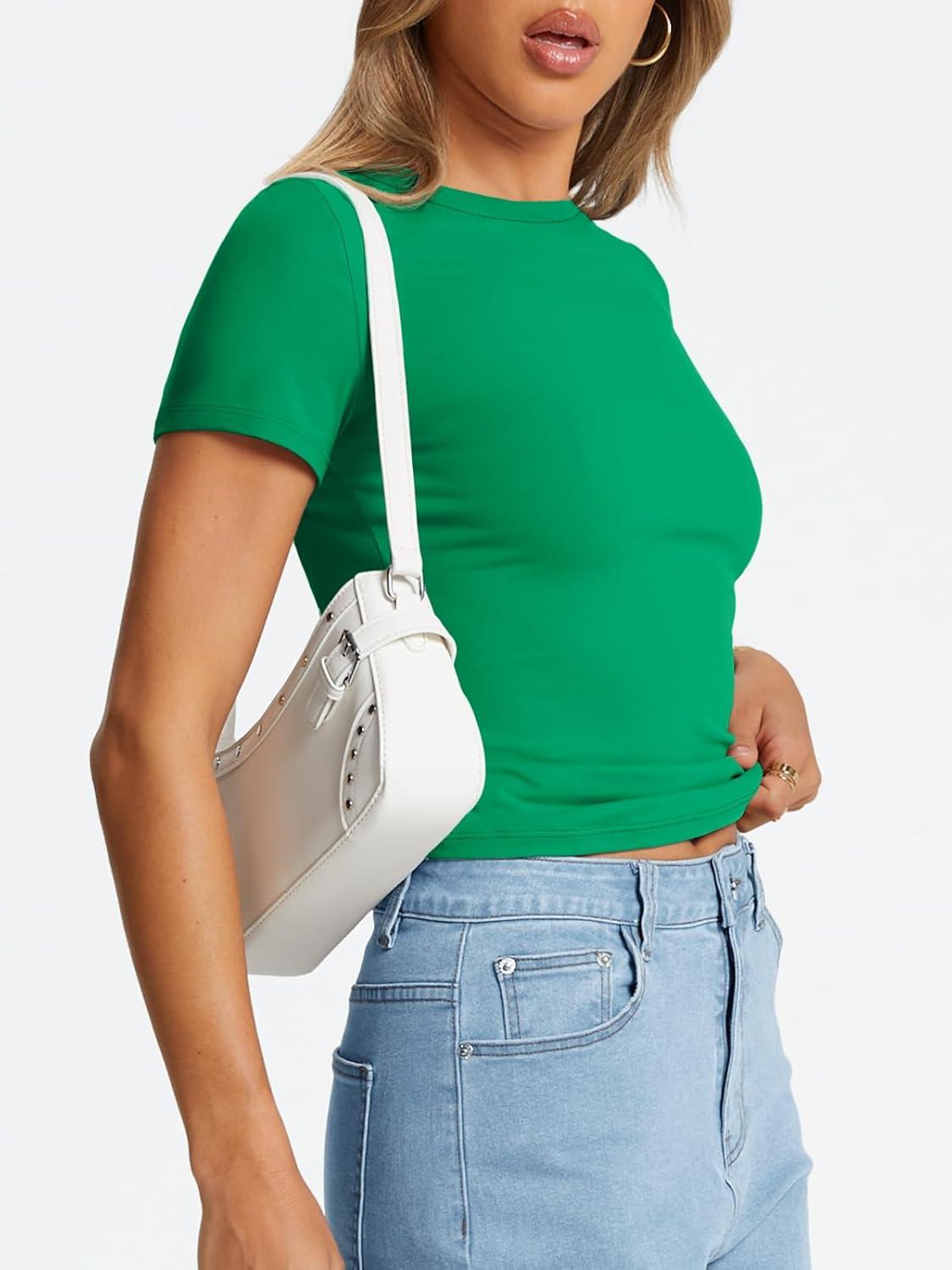 Trendy Queen Womens Basic T Shirts Summer Tops 2026 Crop Short Sleeve Slim Fit Tee Cute Gym Workout Clothes(Saint Patrick Green)