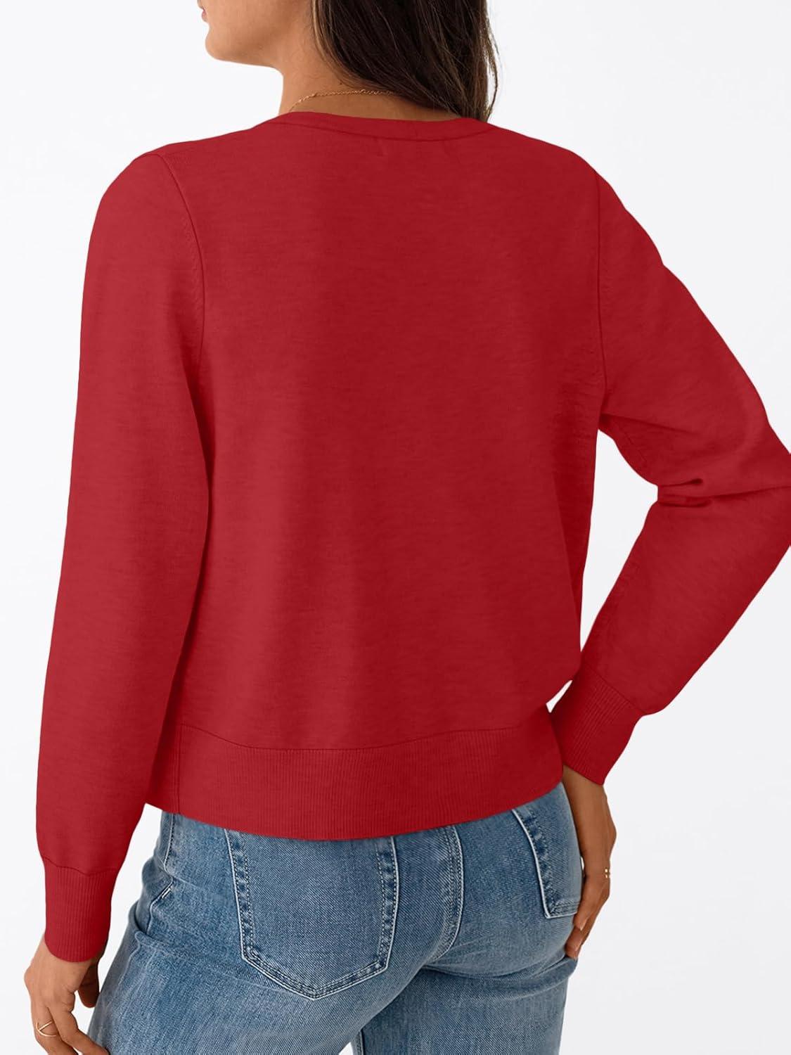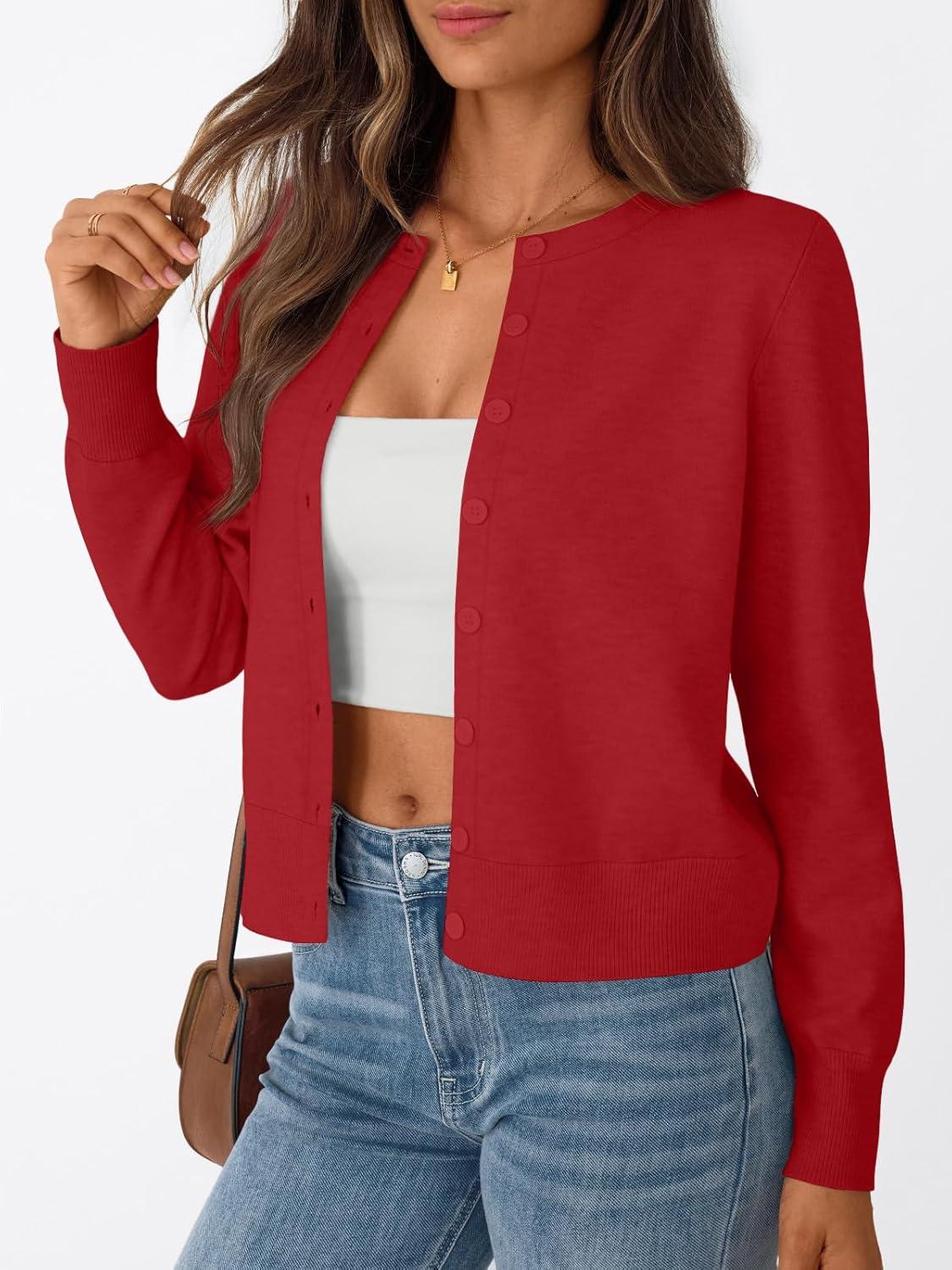 Trendy Queen Womens Cardigan Sweaters Lightweight Crew Neck Outfits Fall Fashion 2025 Clothing(Red)