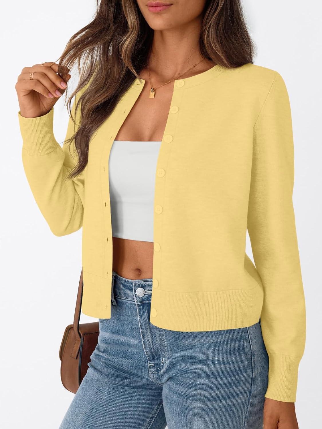 Trendy Queen Womens Cardigan Sweaters Lightweight Crew Neck Outfits Fall Fashion 2025 Clothing(Yellow)