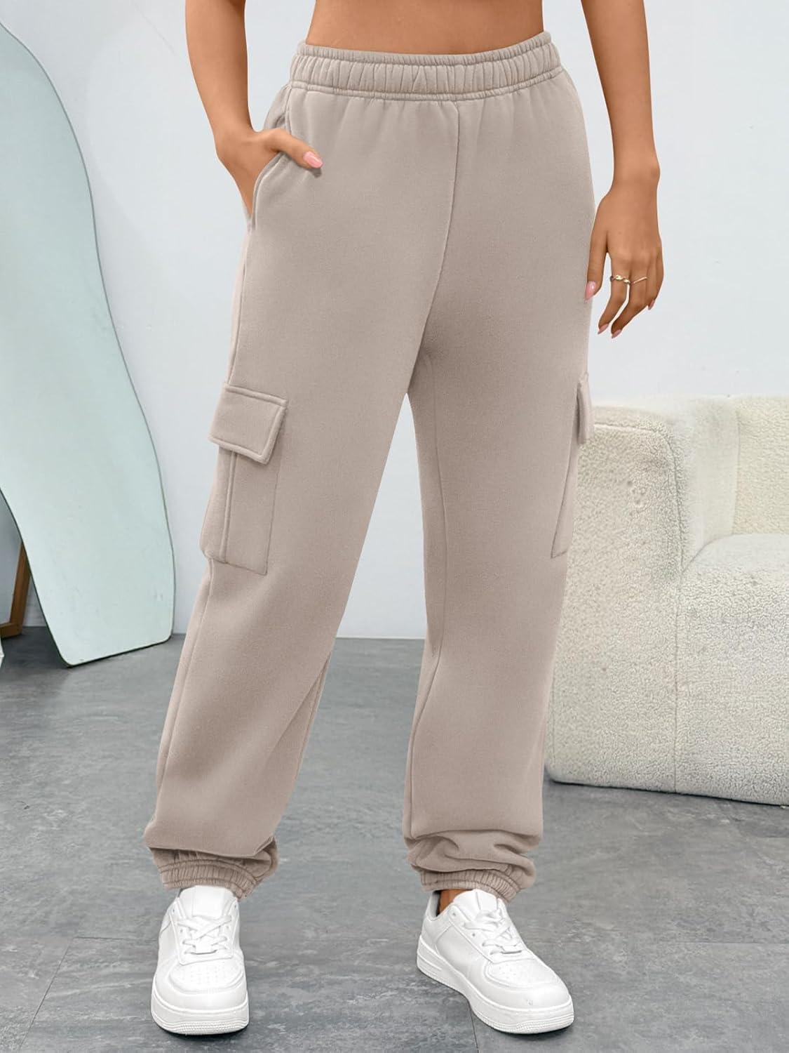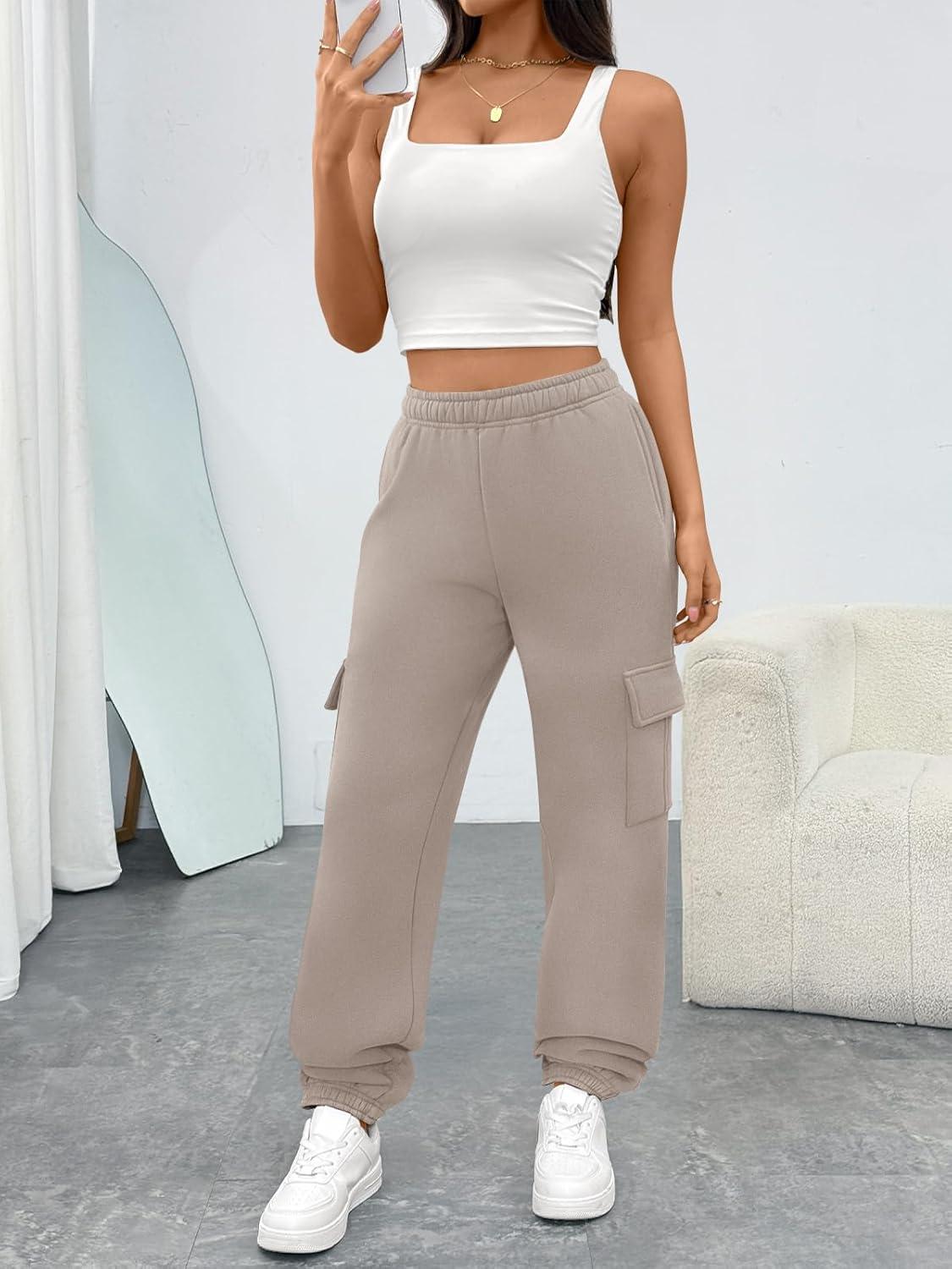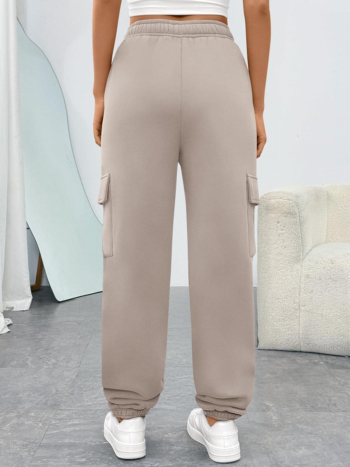 Trendy Queen Womens Cargo Sweatpants Oversized Fleece Joggers Baggy Athletic Pants with Pocket(Coffeegrey)