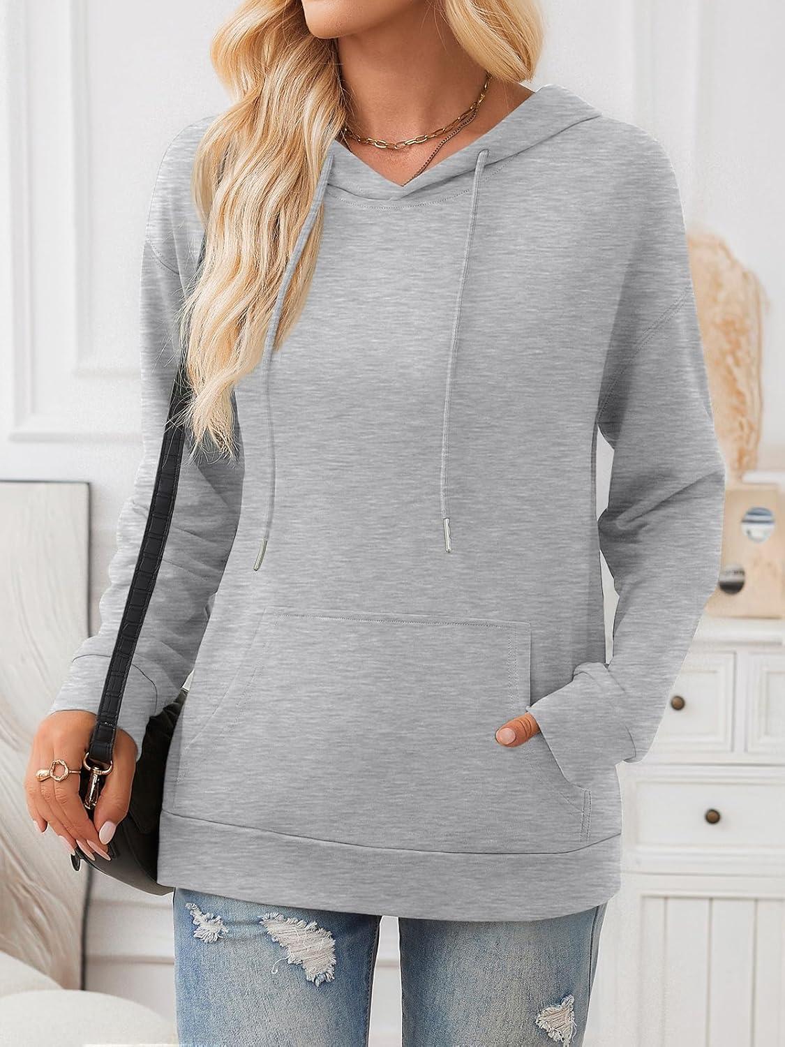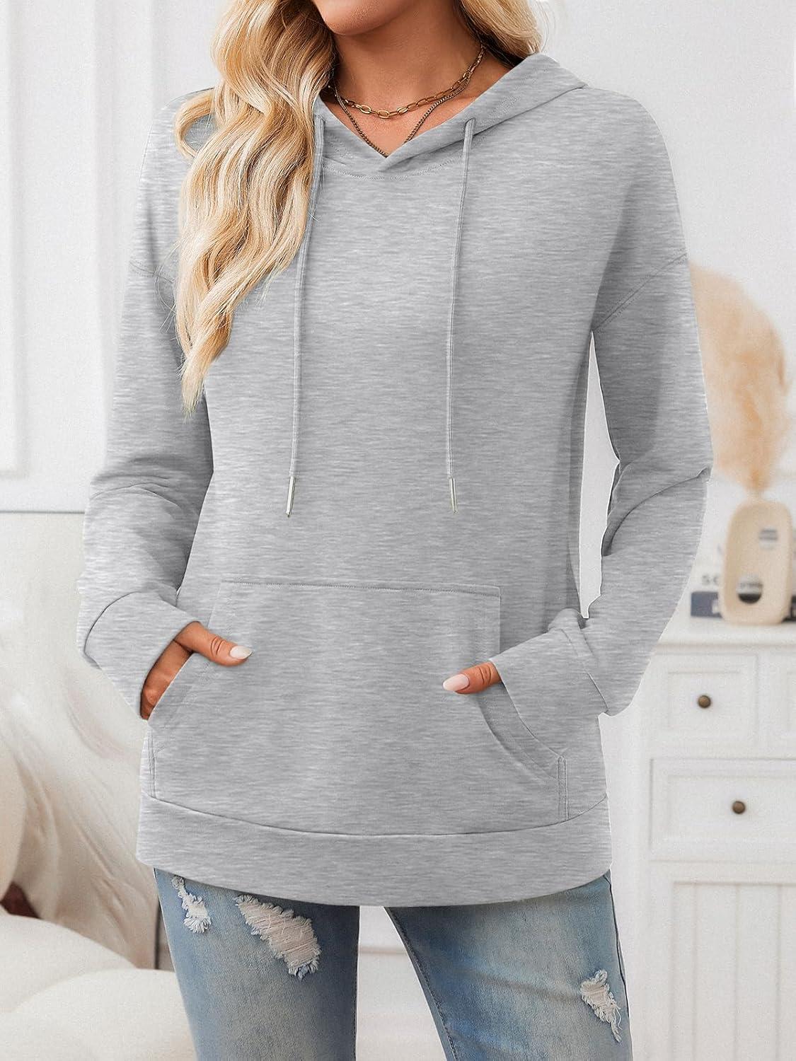 Trendy Queen Womens Fall Fashion T Shirts Basic Drawstring Pullover Loose Fit Hoodies Winter Clothes with Pocket(Grey)