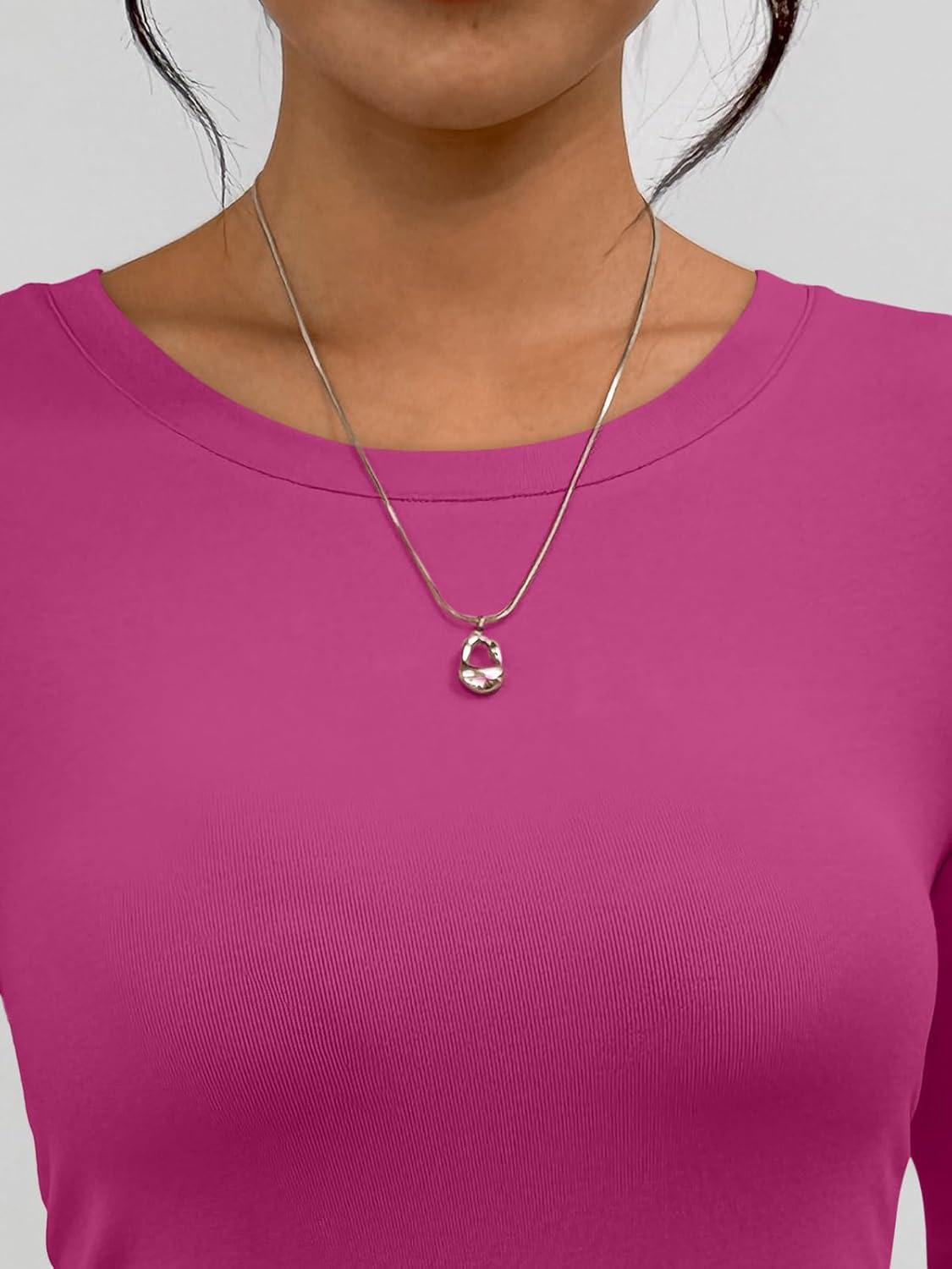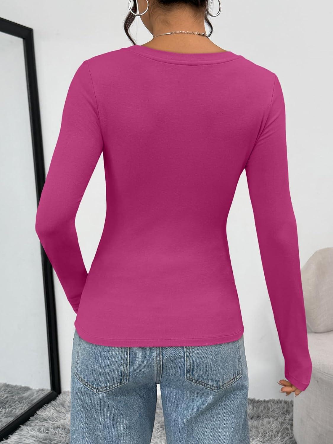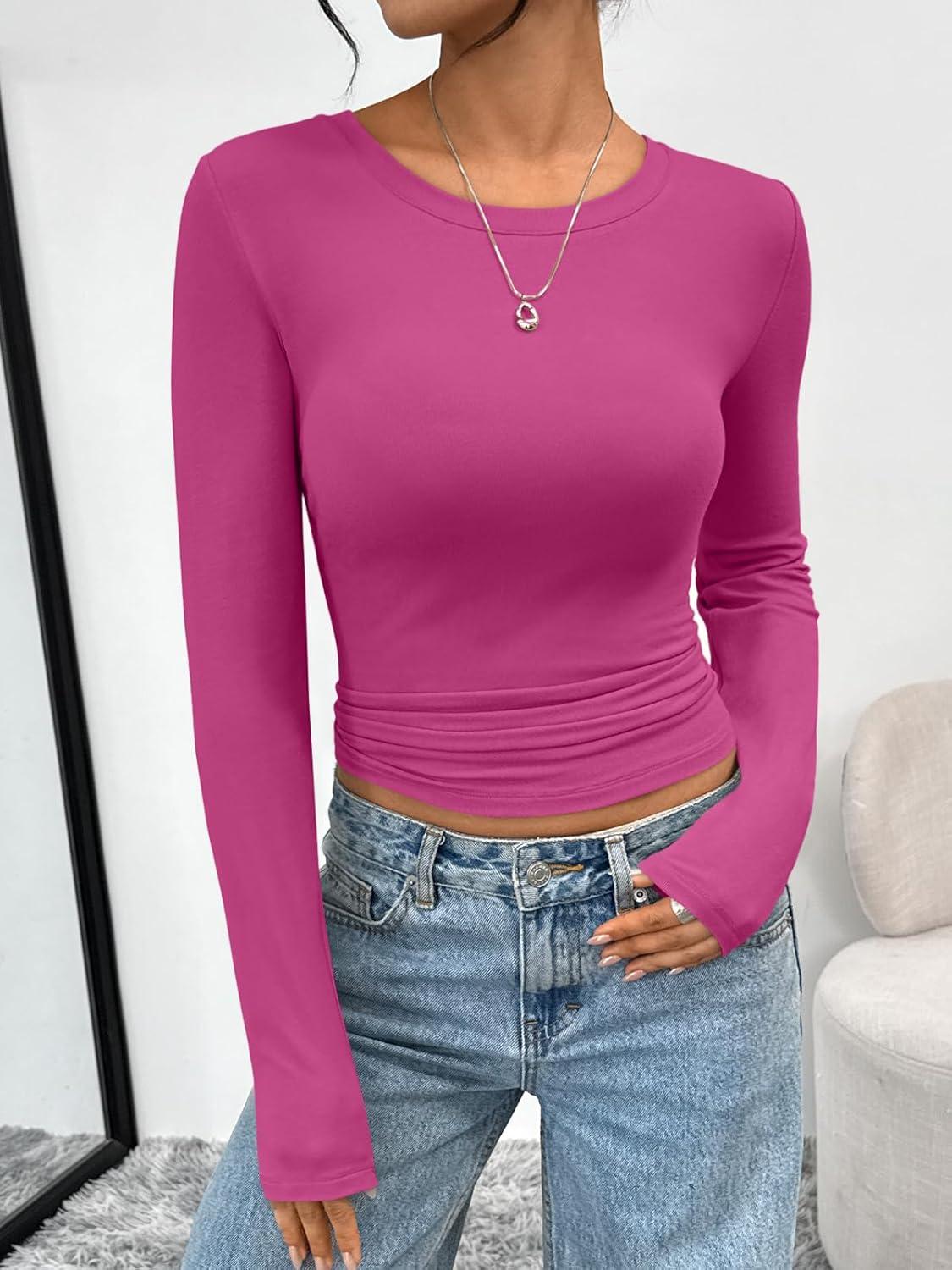 Trendy Queen Womens Long Sleeve T-Shirts Basic Crop Tops 2025 Fall Fashion Outfits Going Out Winter Clothes(Rosered)