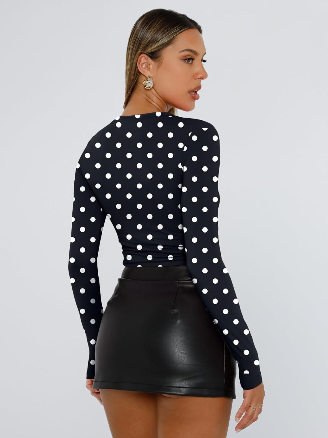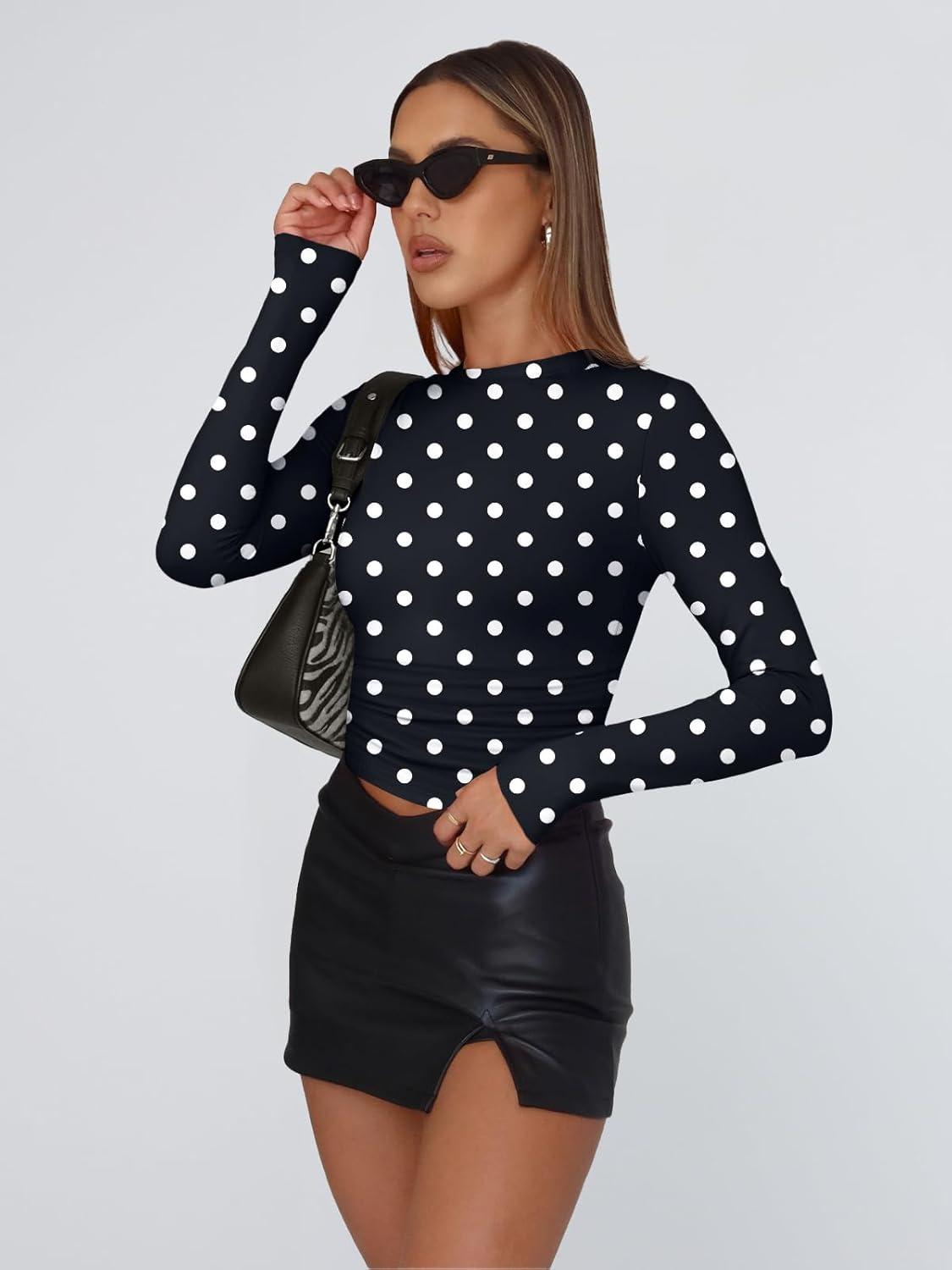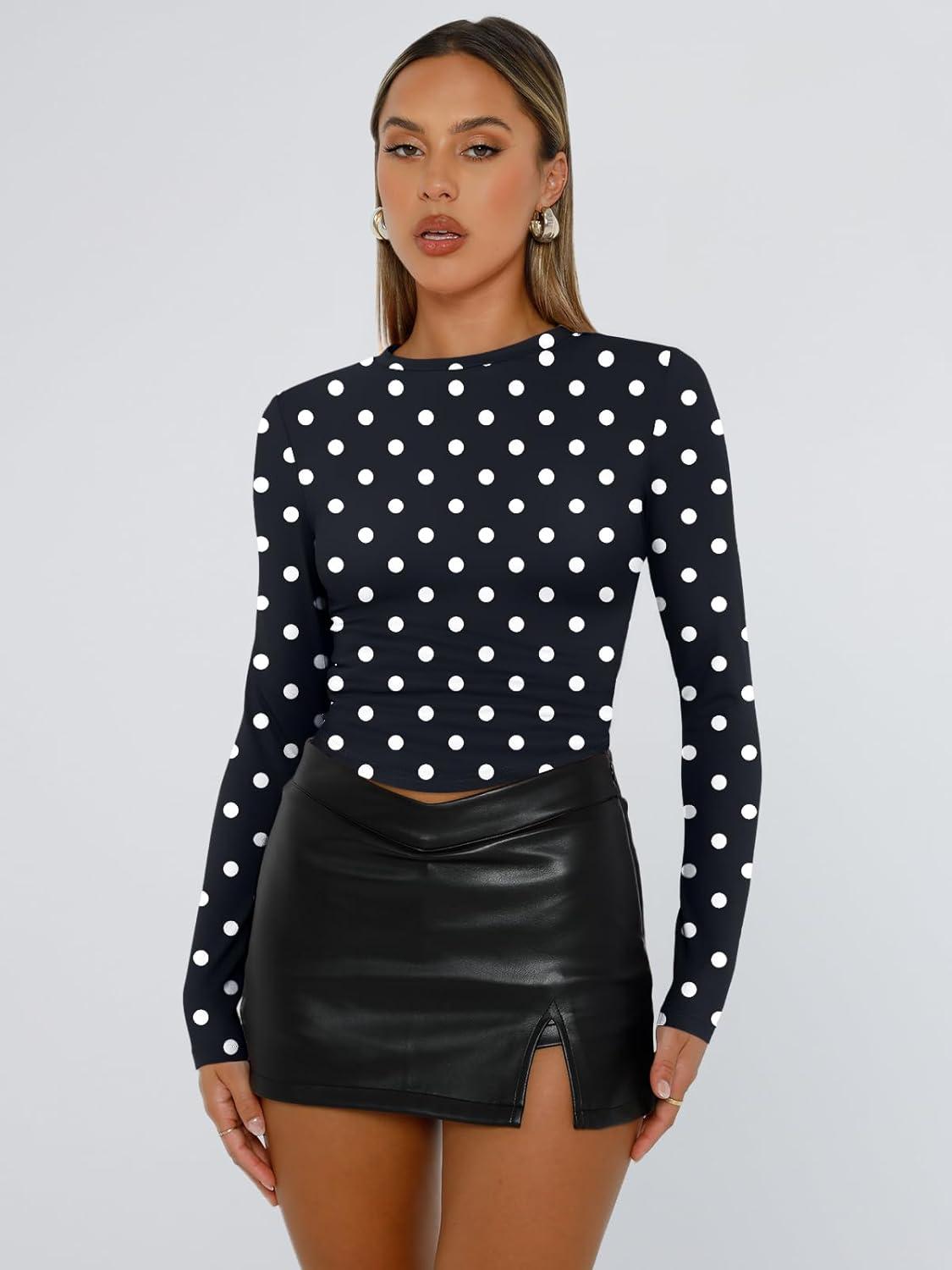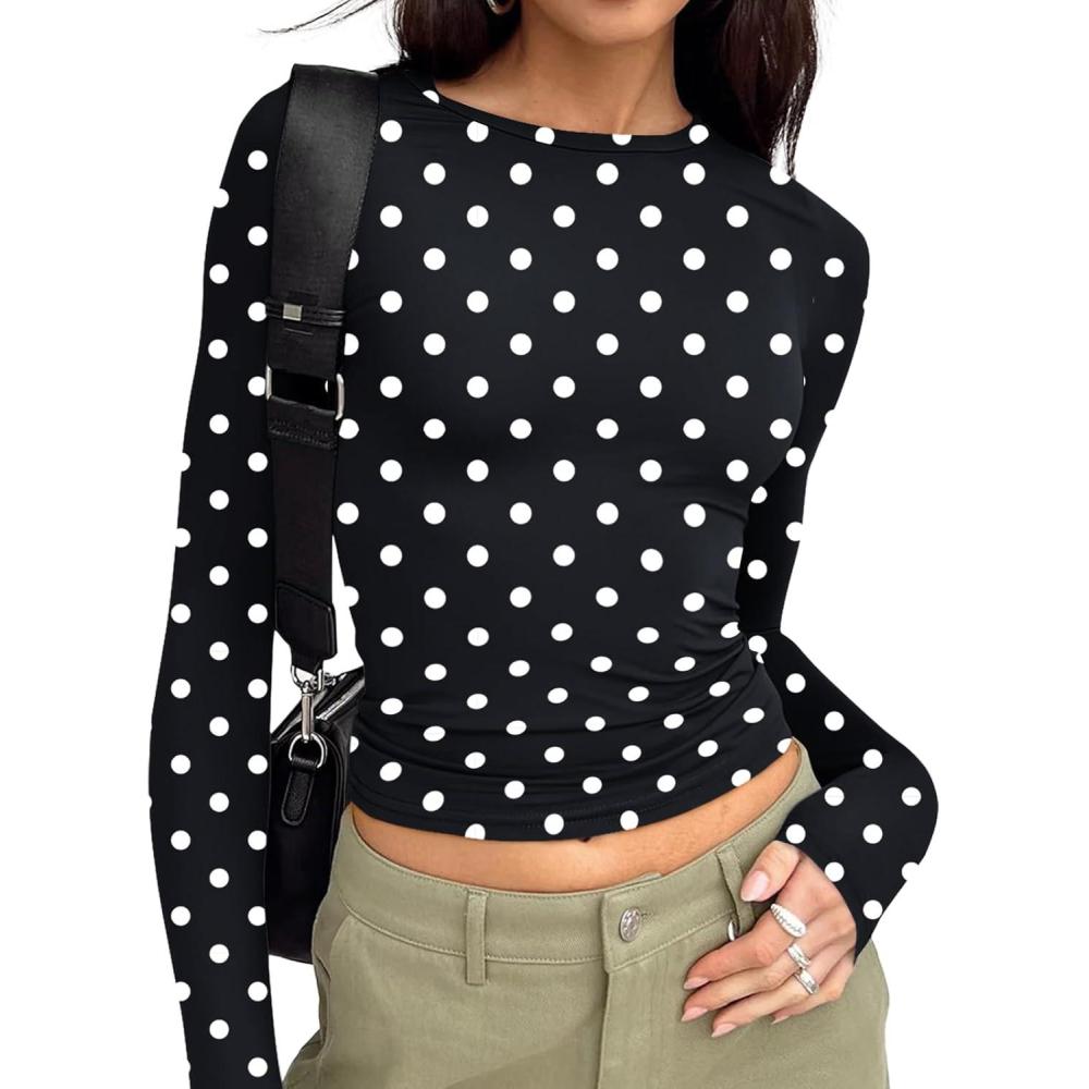 Trendy Queen Womens Long Sleeve T Shirts Fall Fashion 2025 Basic Crop Tops Going Out Outfits Y2k Clothes(Spots)