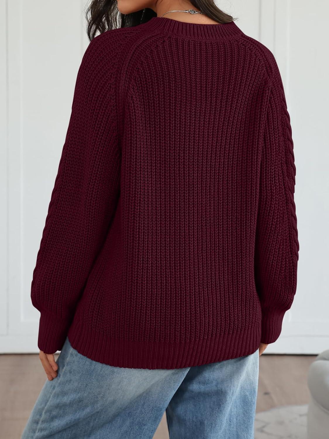 Trendy Queen Women’s Oversized Cable Knit Crewneck Fall Pullover Sweaters(Wine)