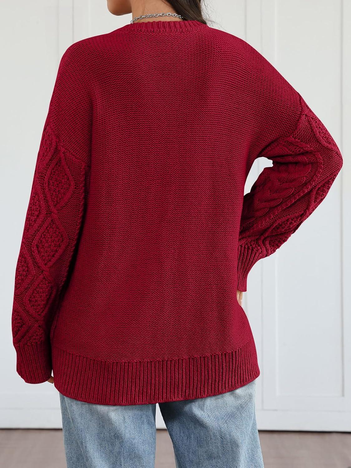 Trendy Queen Women’s Oversized Cable Knit Crewneck Sweaters Cozy Winter Clothes(Red)