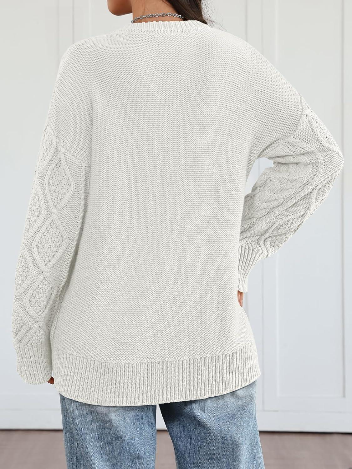 Trendy Queen Women’s Oversized Cable Knit Crewneck Sweaters Cozy Winter Clothes(White)