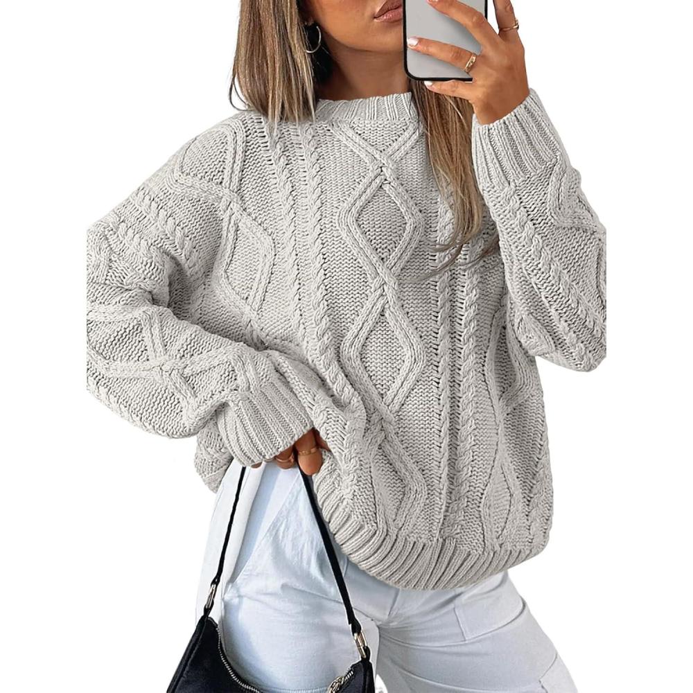 Trendy Queen Women’s Oversized Cable Knit Crewneck Sweaters(Pastel Gray)