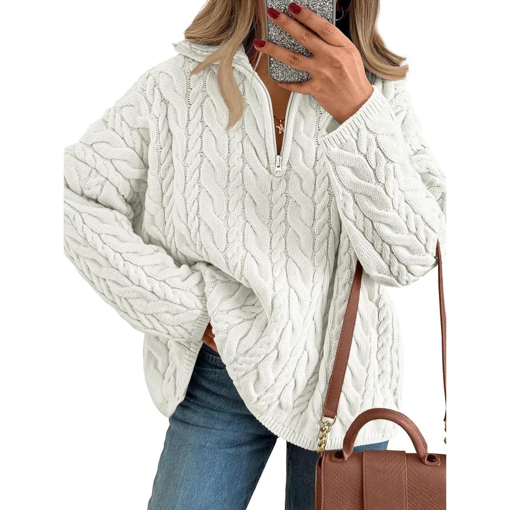 Trendy Queen Women’s Oversized Cable Knit Quarter Zip Up Pullover Sweaters 2025(Off-white)