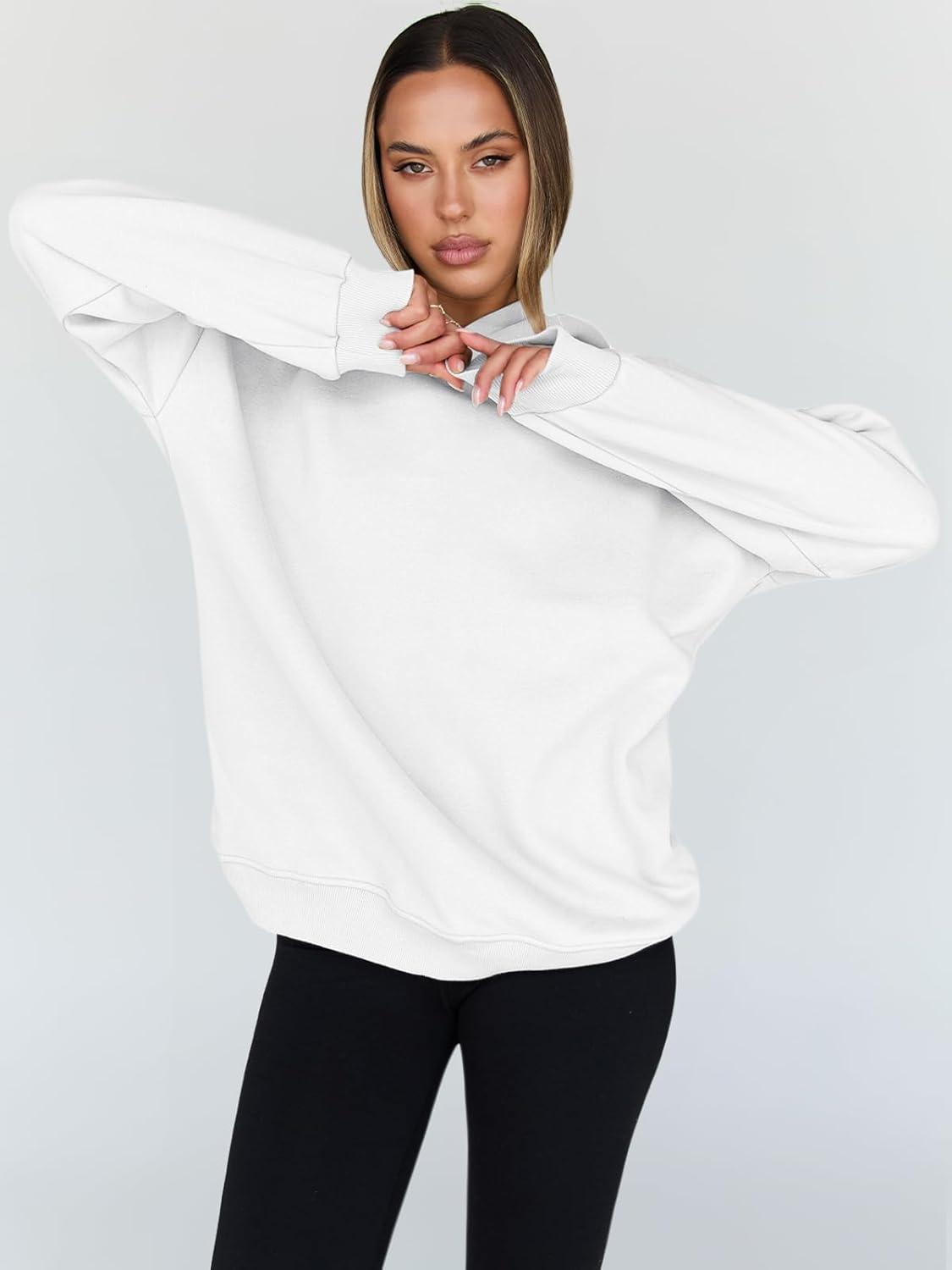 Trendy Queen Womens Oversized Hoodies Fleece Hooded Sweatshirts Casual Pullover Fall Winter Outfits Long Sleeve Tops 2025(White)