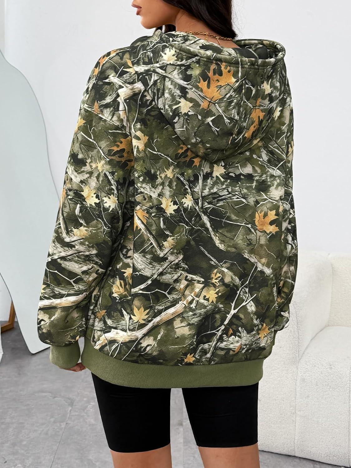 Trendy Queen Womens Oversized Hoodies Fleece Sweatshirts Fall Fashion Pullover Sweaters Winter Clothes(Camo Maple)