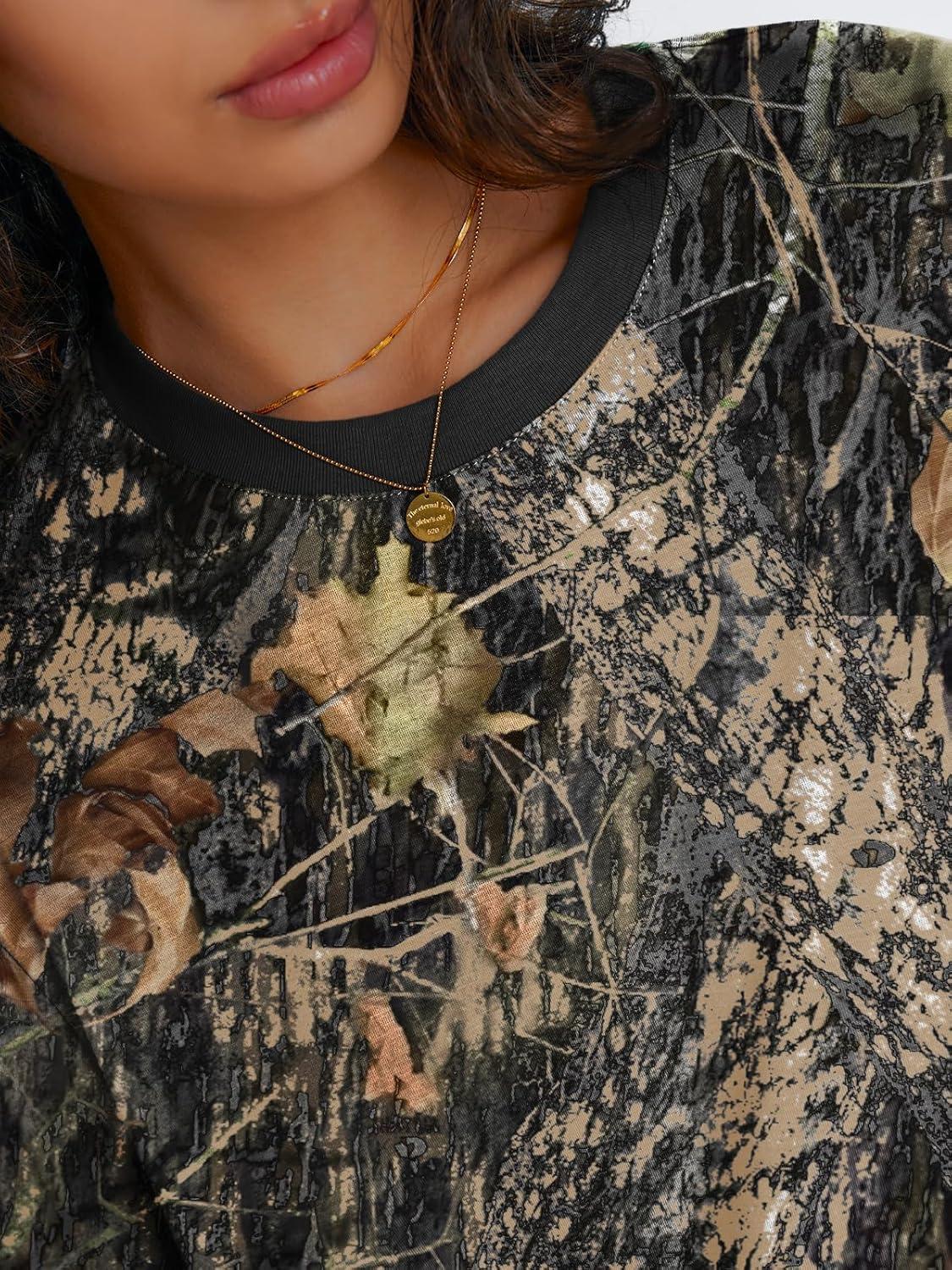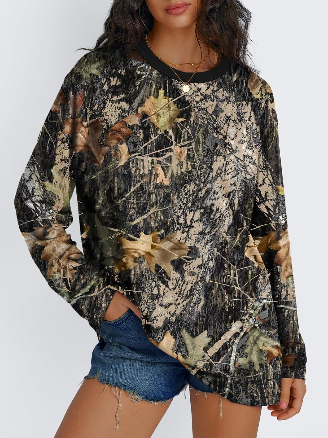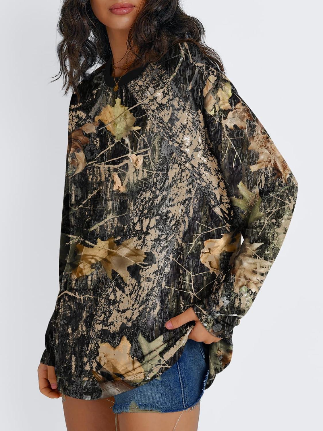 Trendy Queen Womens Oversized Long Sleeve T Shirts 2025 Basic Crewneck Tee Fall Tops Casual Workout Y2K Clothes(Camoblack)