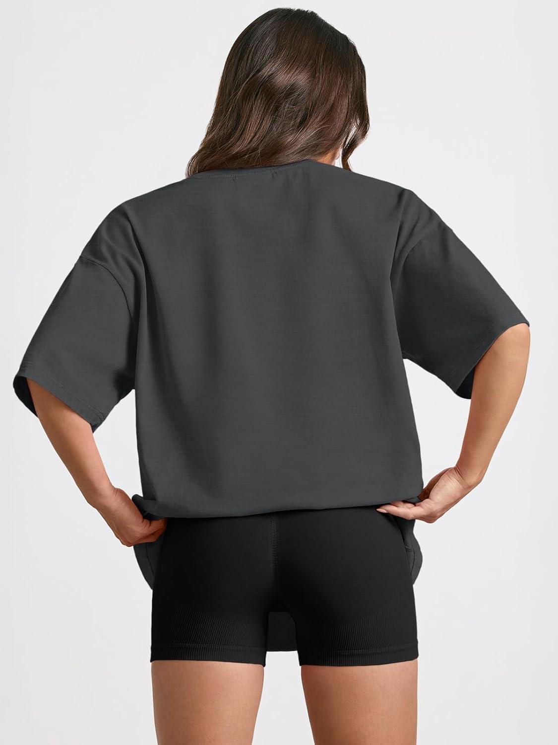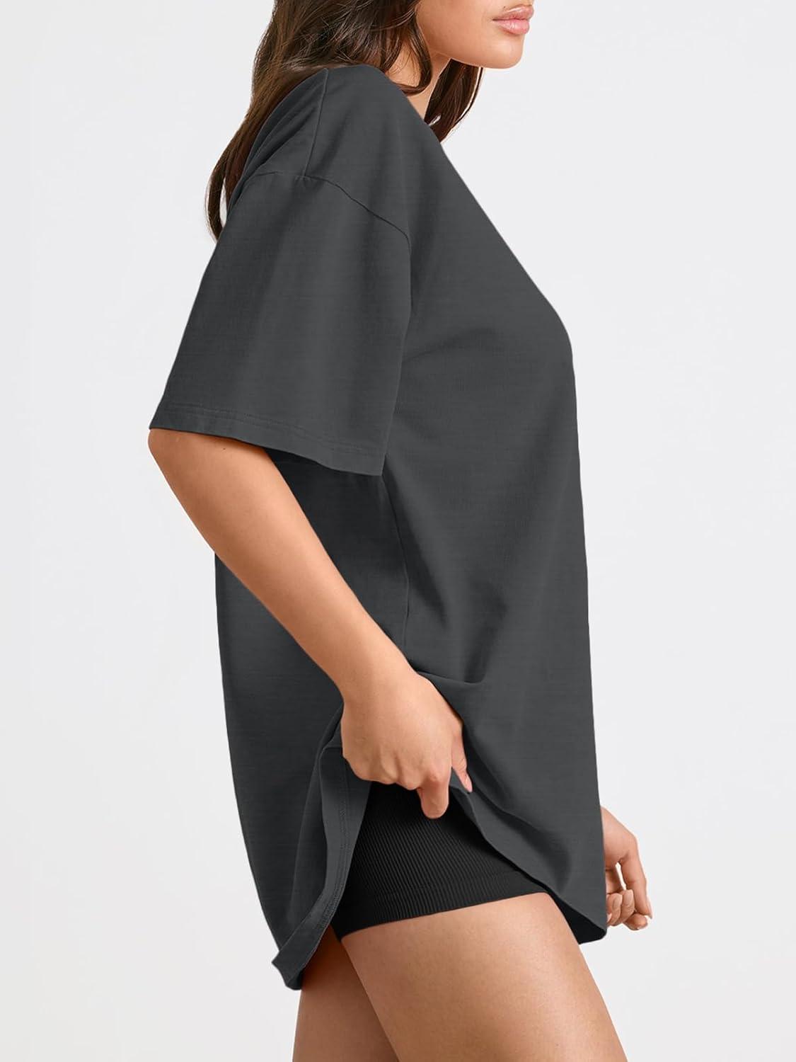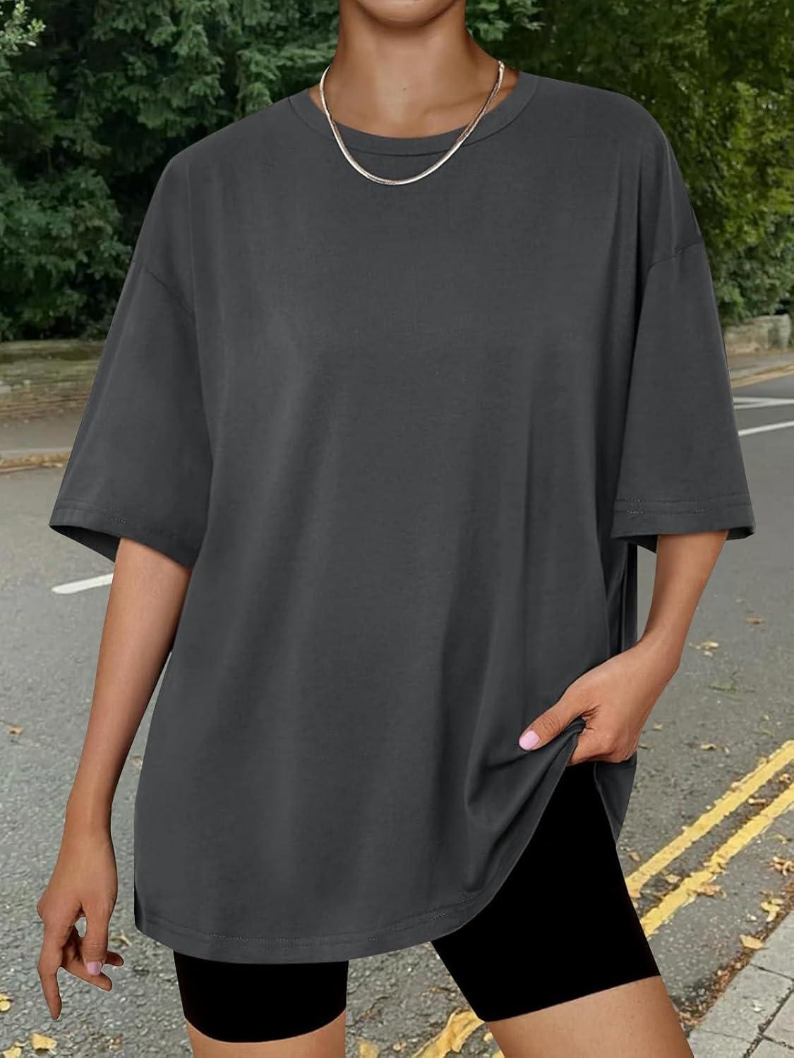 Trendy Queen Womens Oversized Summer T Shirts Plus Size Batwing Cute Casual Tops Short Sleeves Fashion Workout Clothes(Blackgrey)