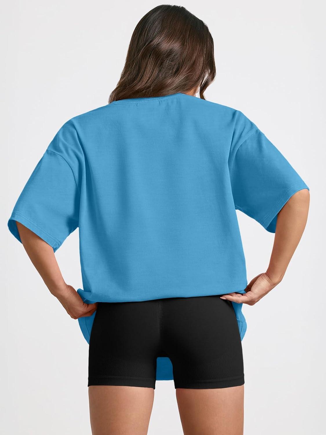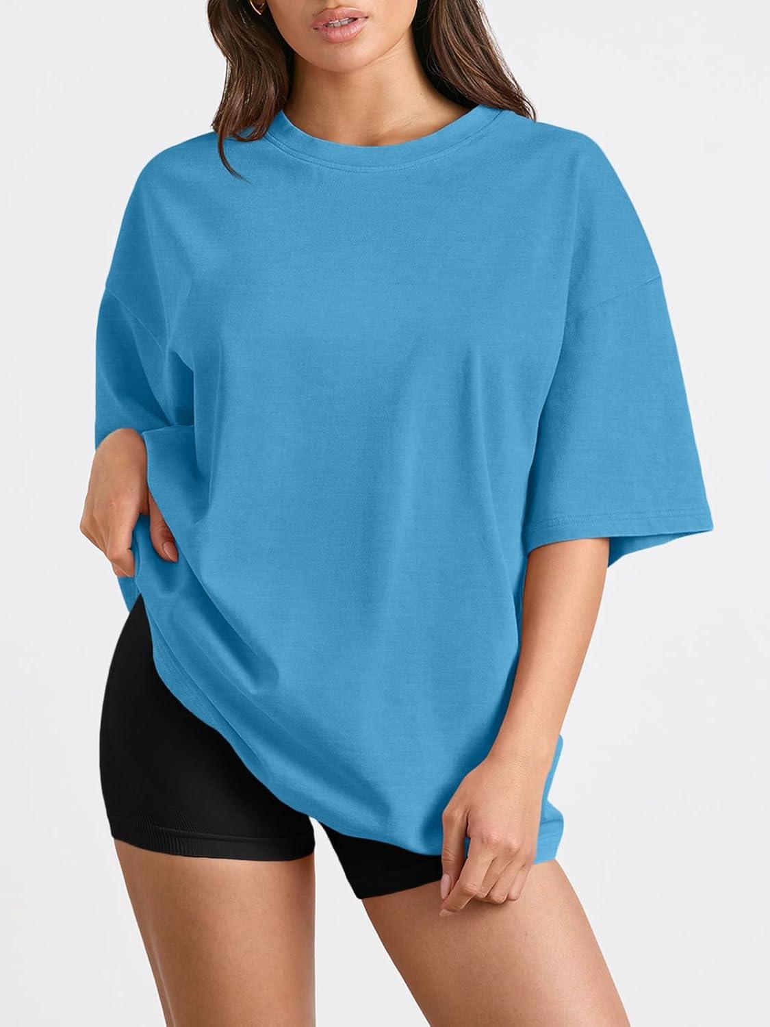 Trendy Queen Womens Oversized Summer T Shirts Plus Size Batwing Cute Casual Tops Short Sleeves Fashion Workout Clothes(Brightblue)