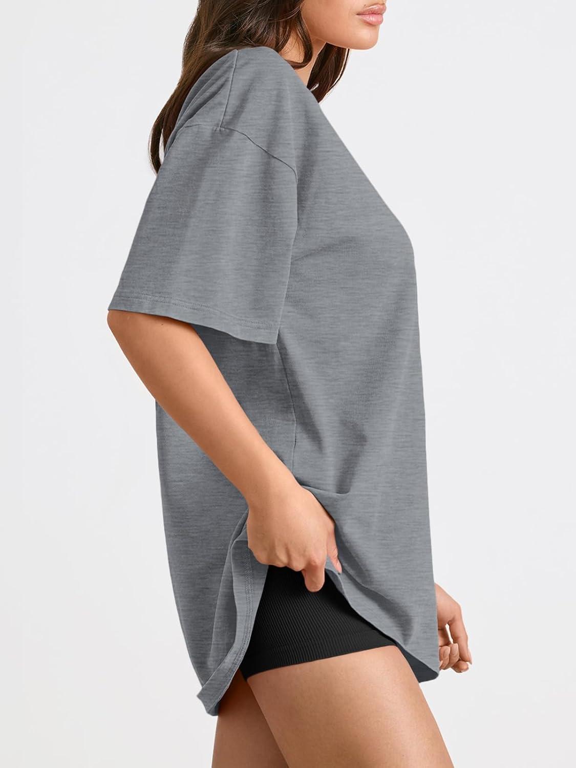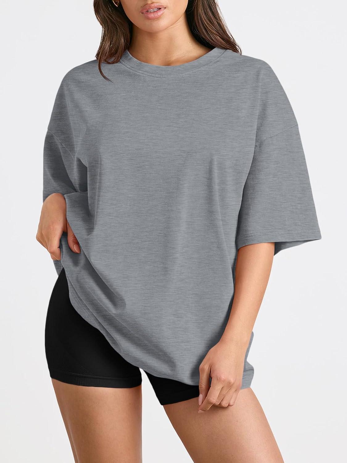 Trendy Queen Womens Oversized Summer T Shirts Plus Size Batwing Cute Casual Tops Short Sleeves Fashion Workout Clothes(Darkgrey)