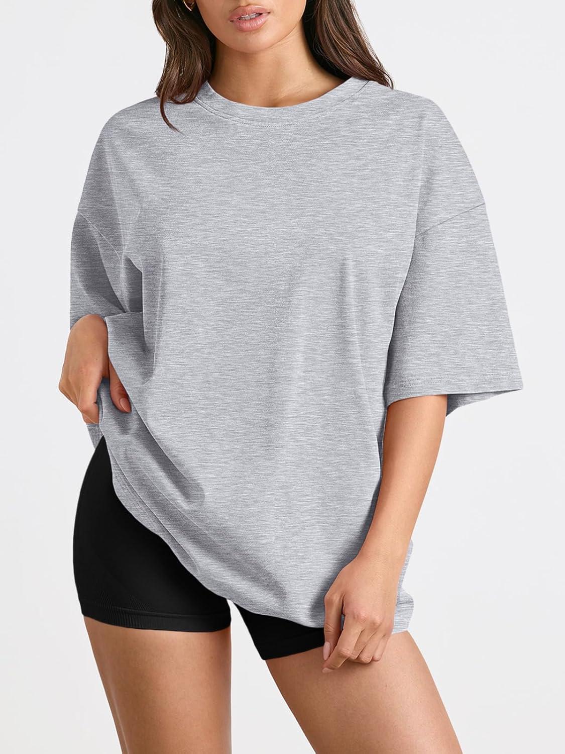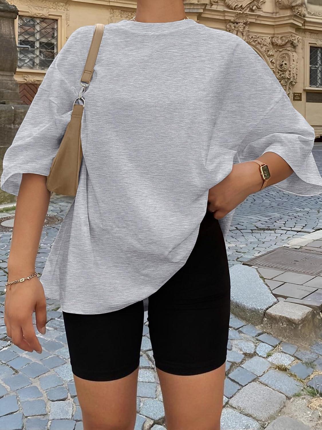 Trendy Queen Womens Oversized Summer T Shirts Plus Size Batwing Cute Casual Tops Short Sleeves Fashion Workout Clothes(Grey)