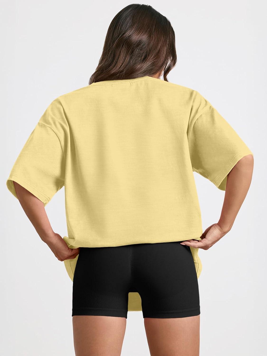 Trendy Queen Womens Oversized Summer T Shirts Plus Size Batwing Cute Casual Tops Short Sleeves Fashion Workout Clothes(Lemonyellow)