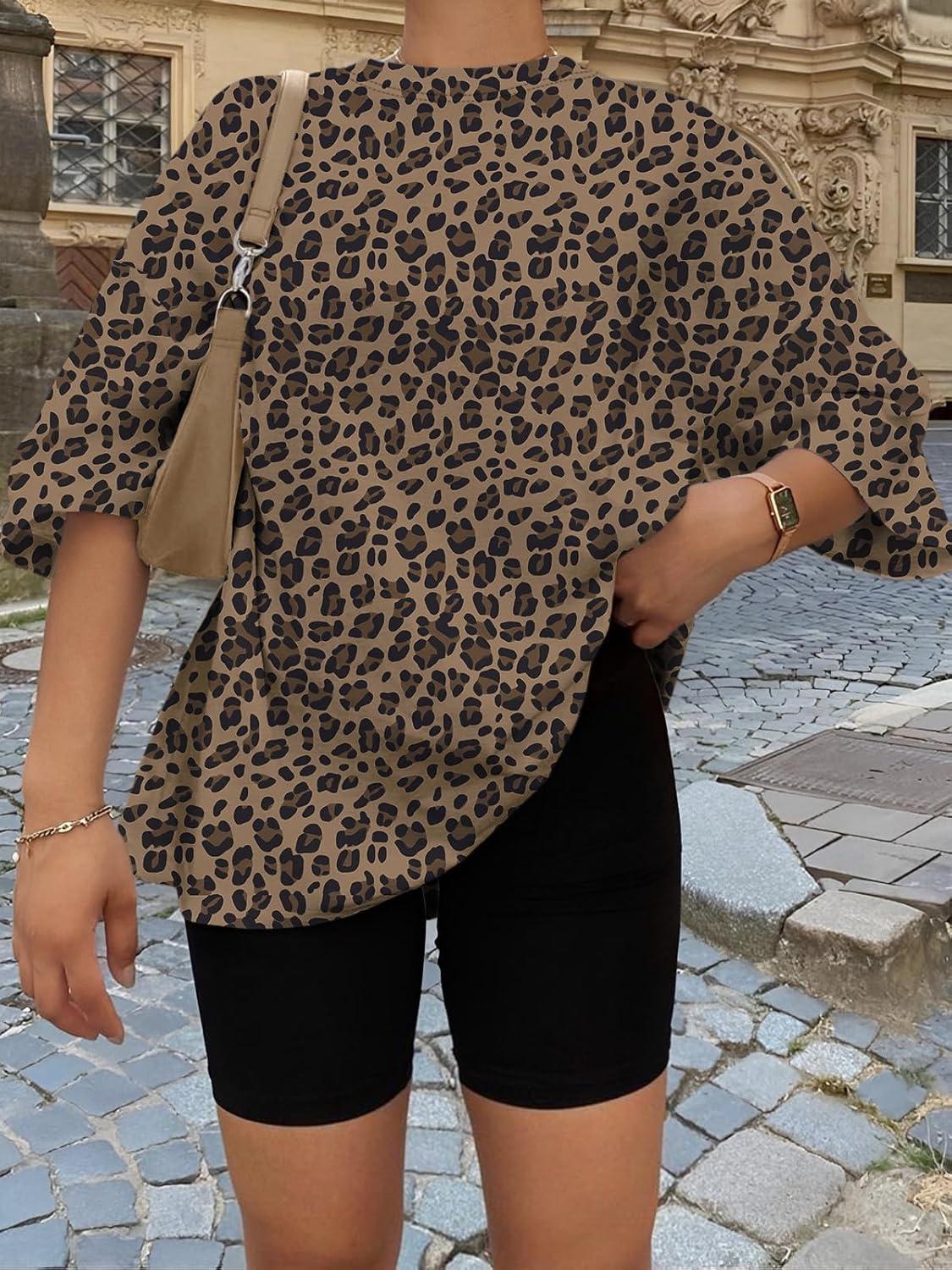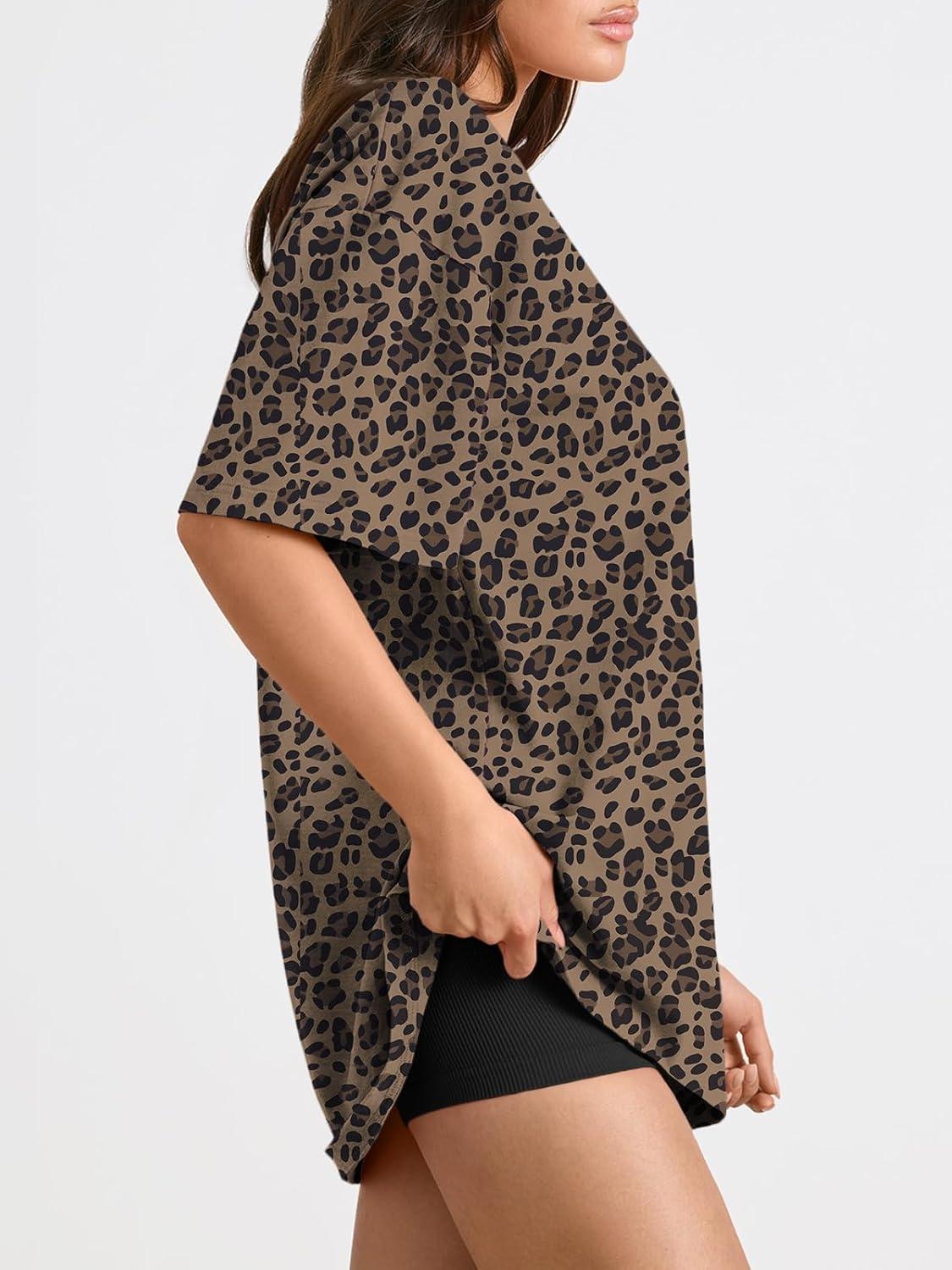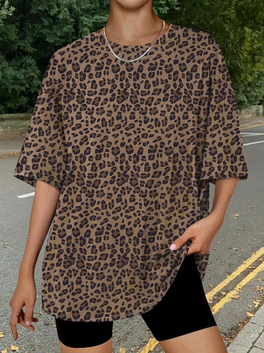 Trendy Queen Womens Oversized Summer T Shirts Plus Size Batwing Cute Casual Tops Short Sleeves Fashion Workout Clothes(Leopard)