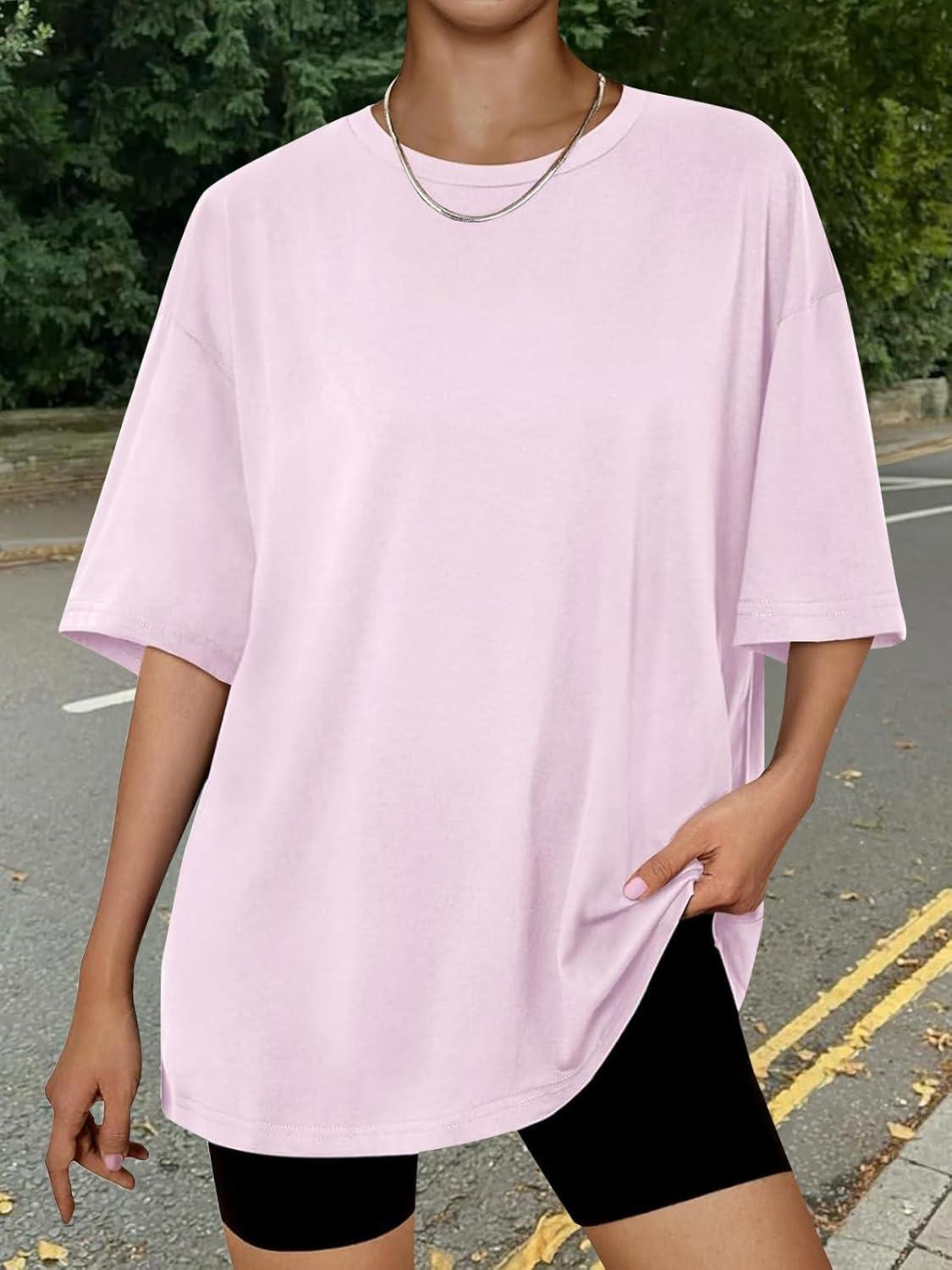 Be the first to review “Trendy Queen Womens Oversized Summer T Shirts Plus Size Batwing Cute Casual Tops Short Sleeves Fashion Workout Clothes(Lightpink)”