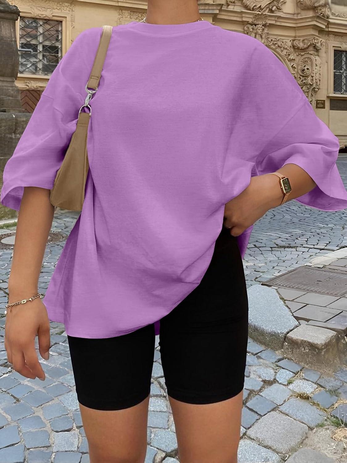Be the first to review “Trendy Queen Womens Oversized Summer T Shirts Plus Size Batwing Cute Casual Tops Short Sleeves Fashion Workout Clothes(Lightpurple)”