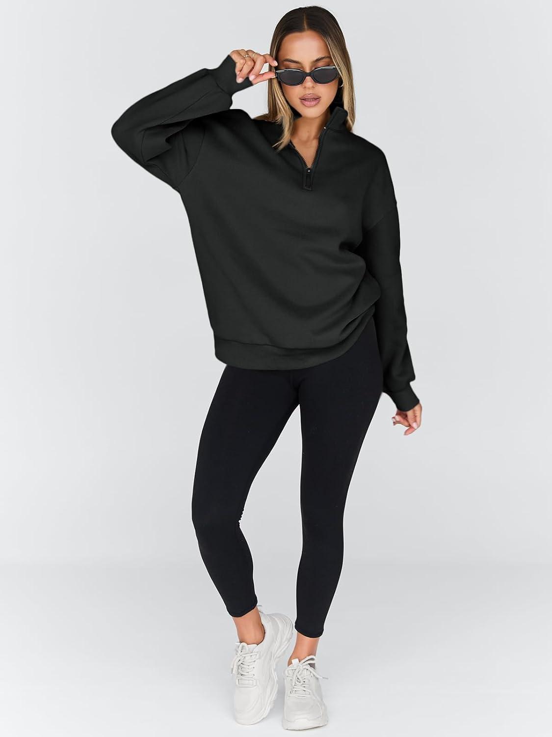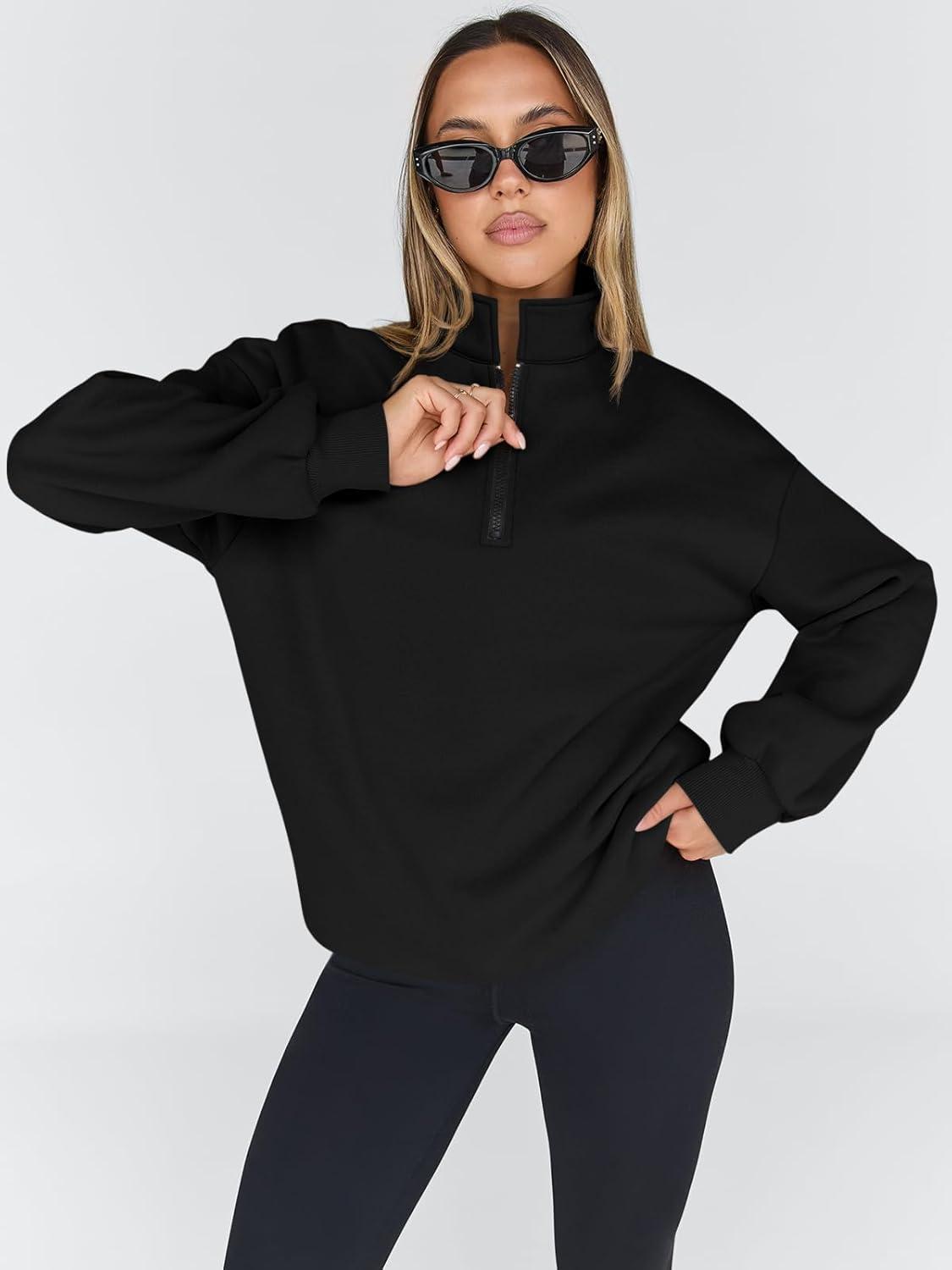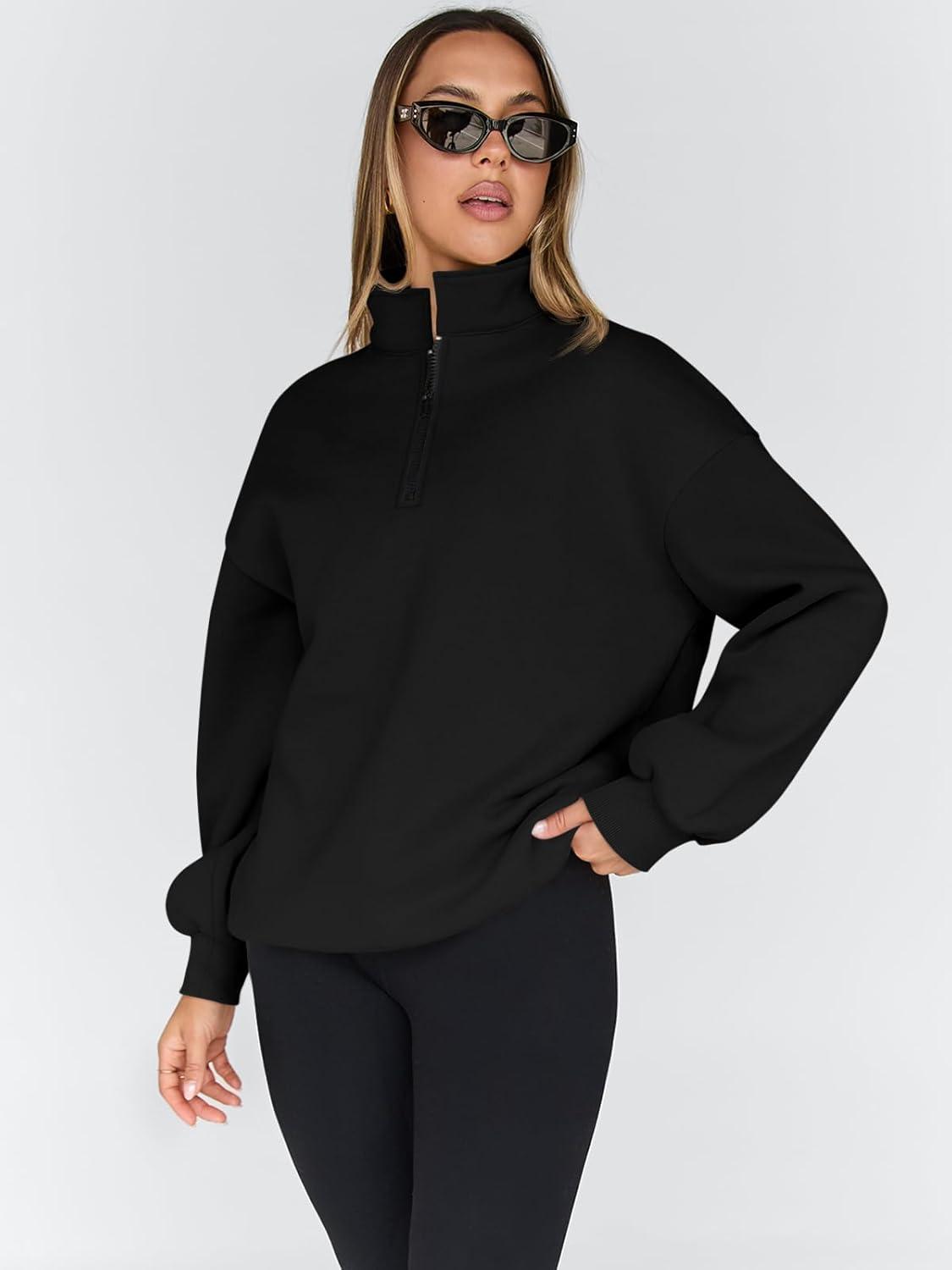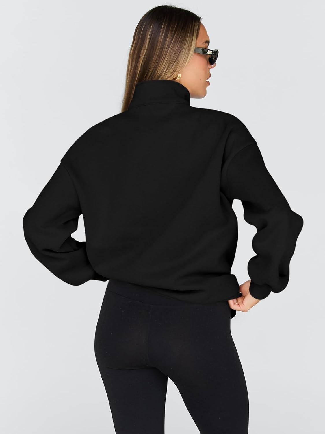Trendy Queen Womens Oversized Sweatshirts Fall Sweaters Fashion Hoodies Half Zip Pullover Long Sleeve Shirts Clothes(Black)