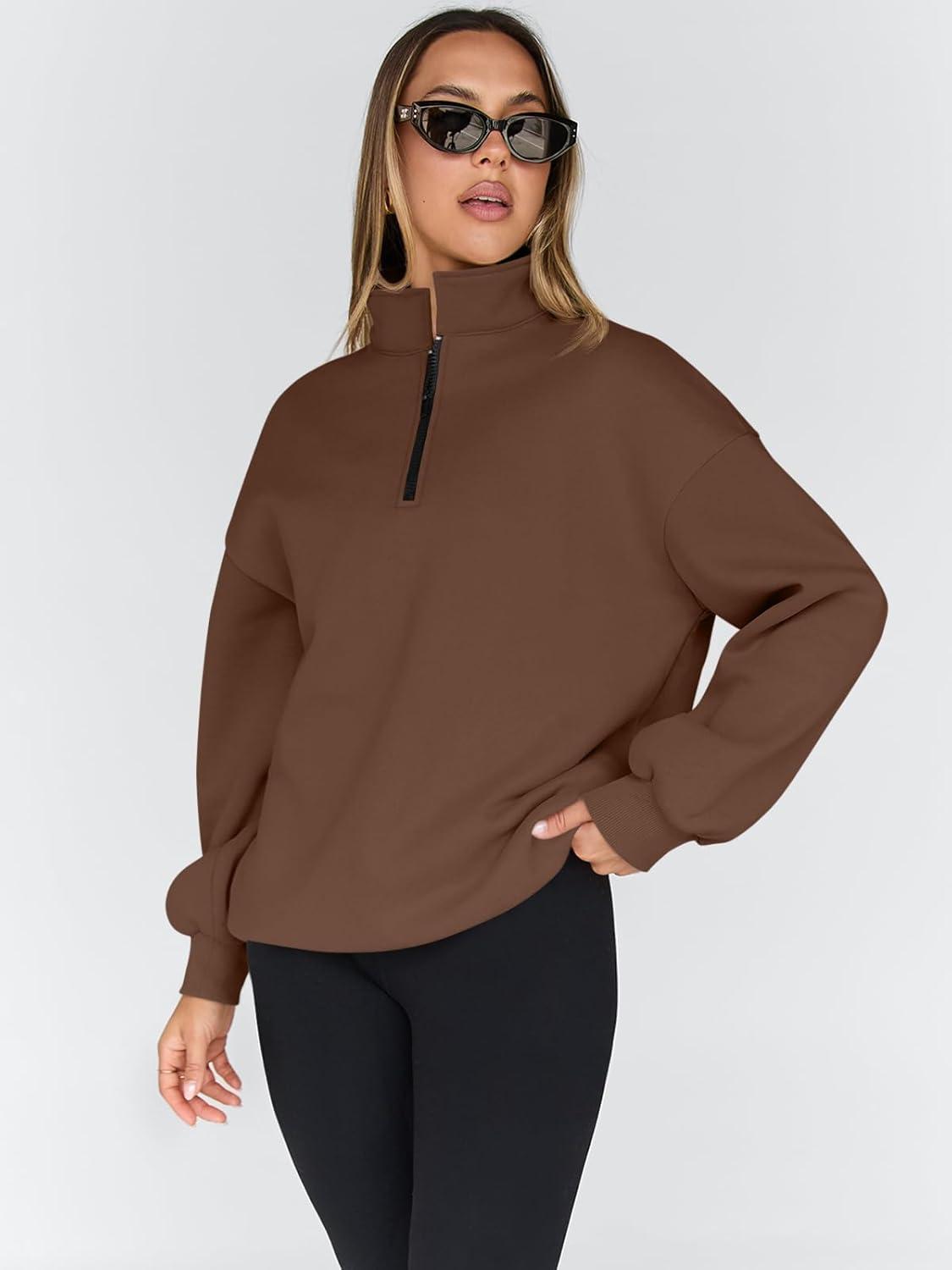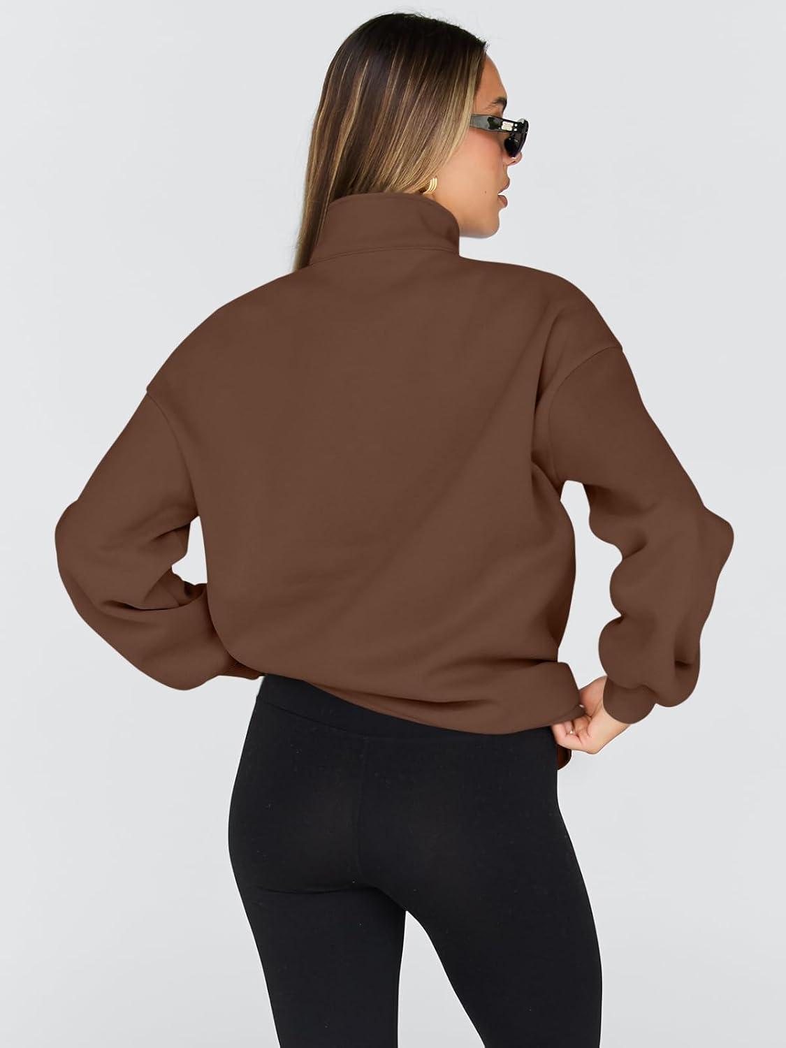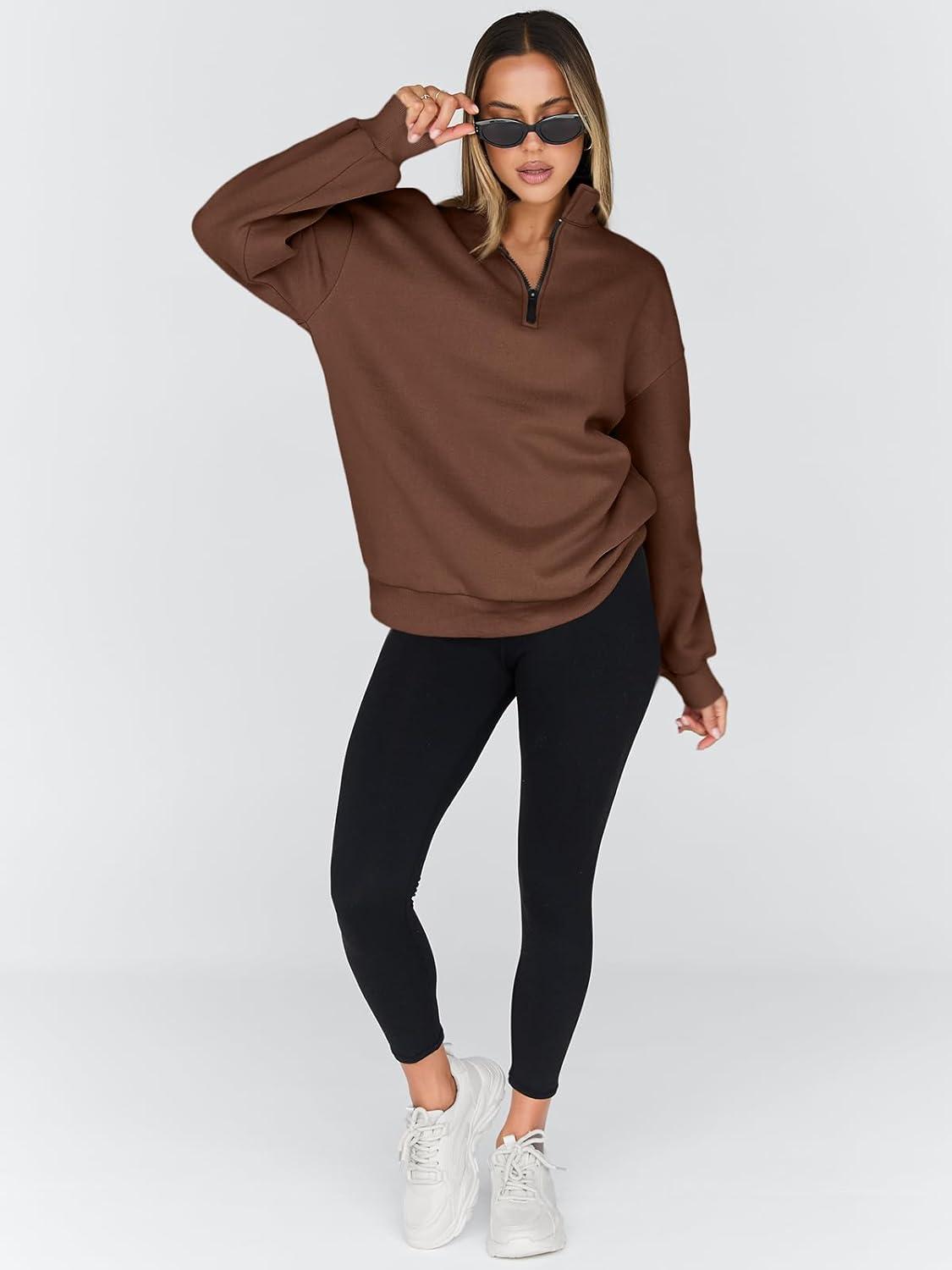 Trendy Queen Womens Oversized Sweatshirts Fall Sweaters Fashion Hoodies Half Zip Pullover Long Sleeve Shirts Clothes(Brown)