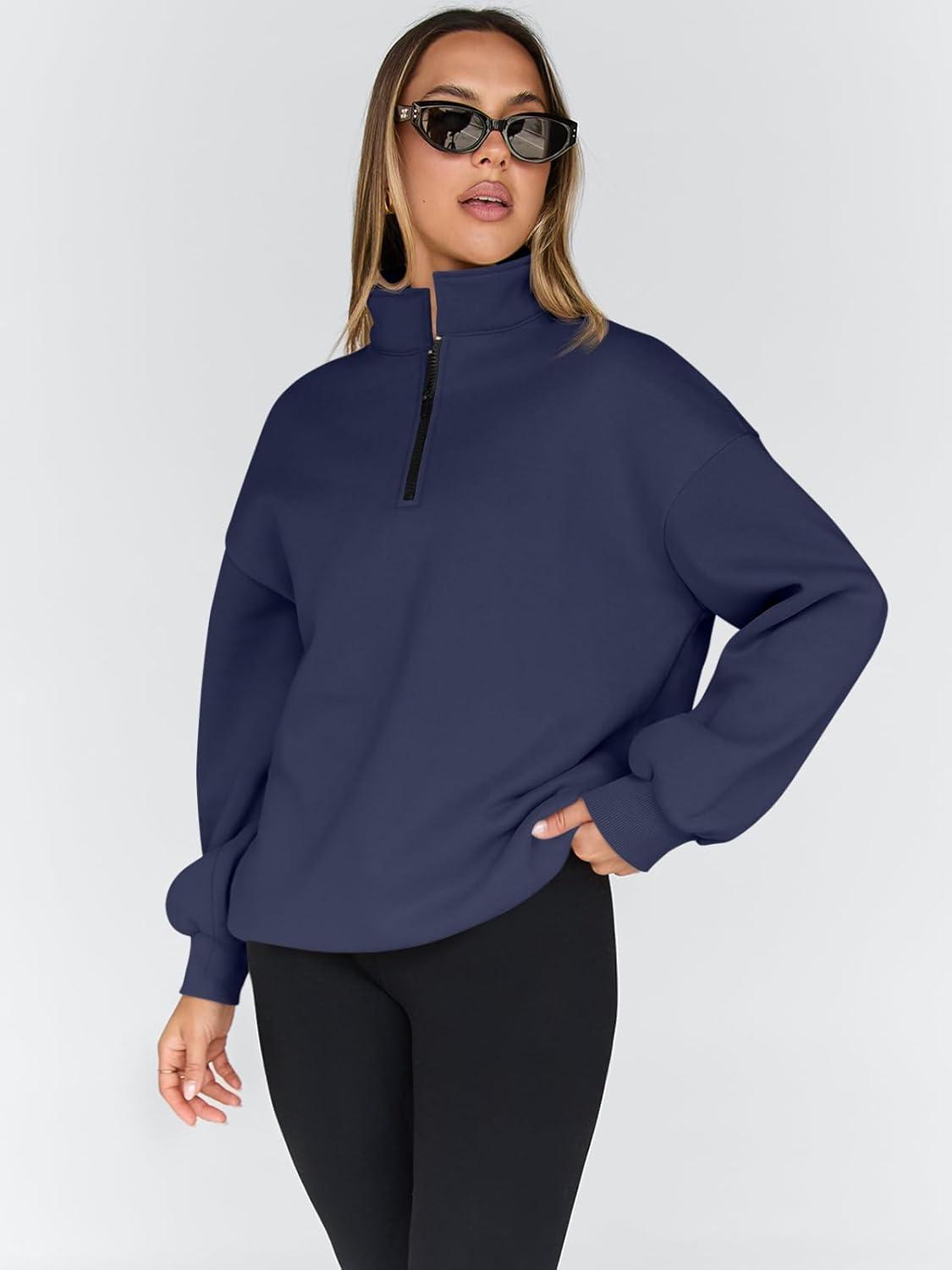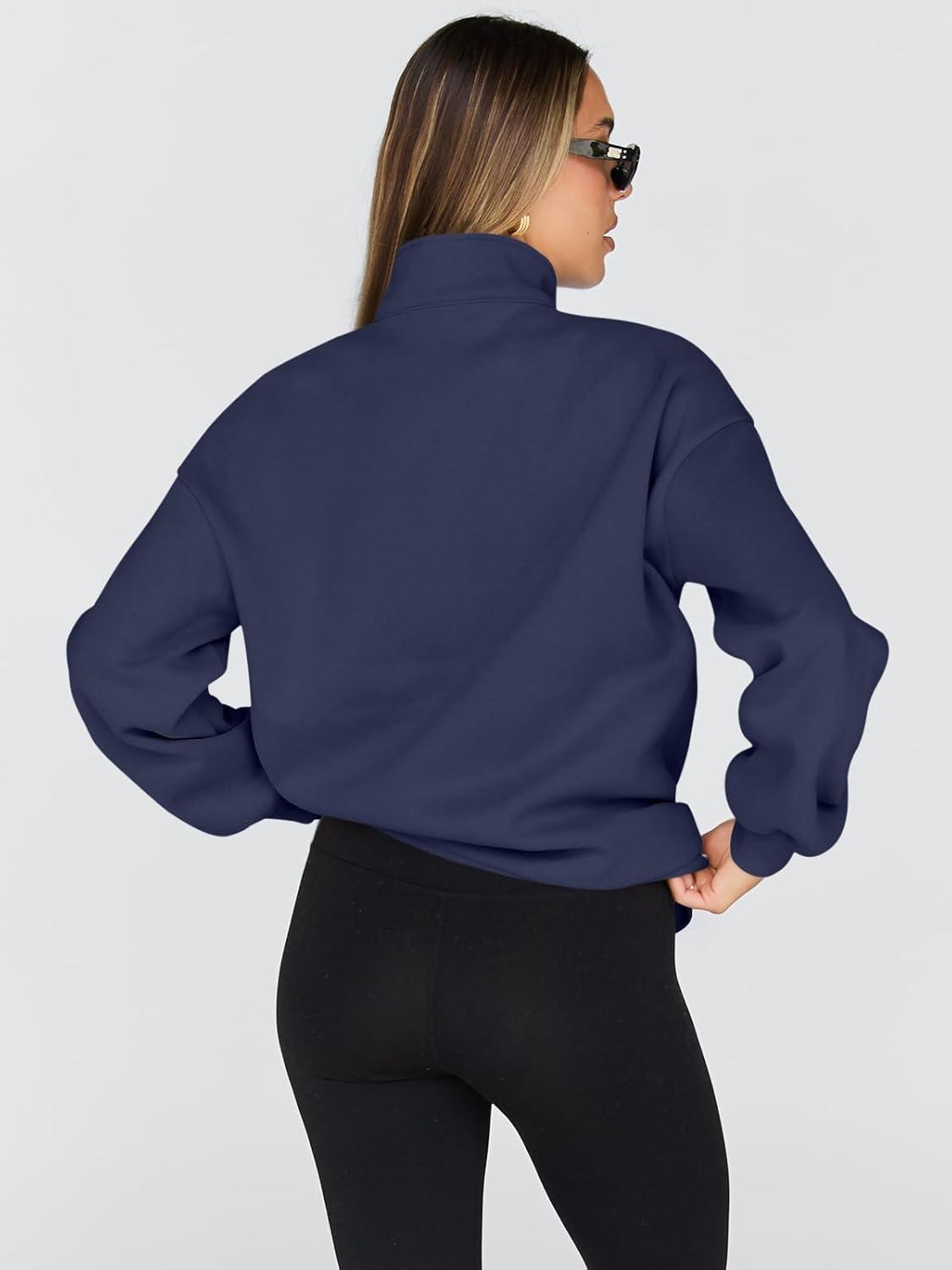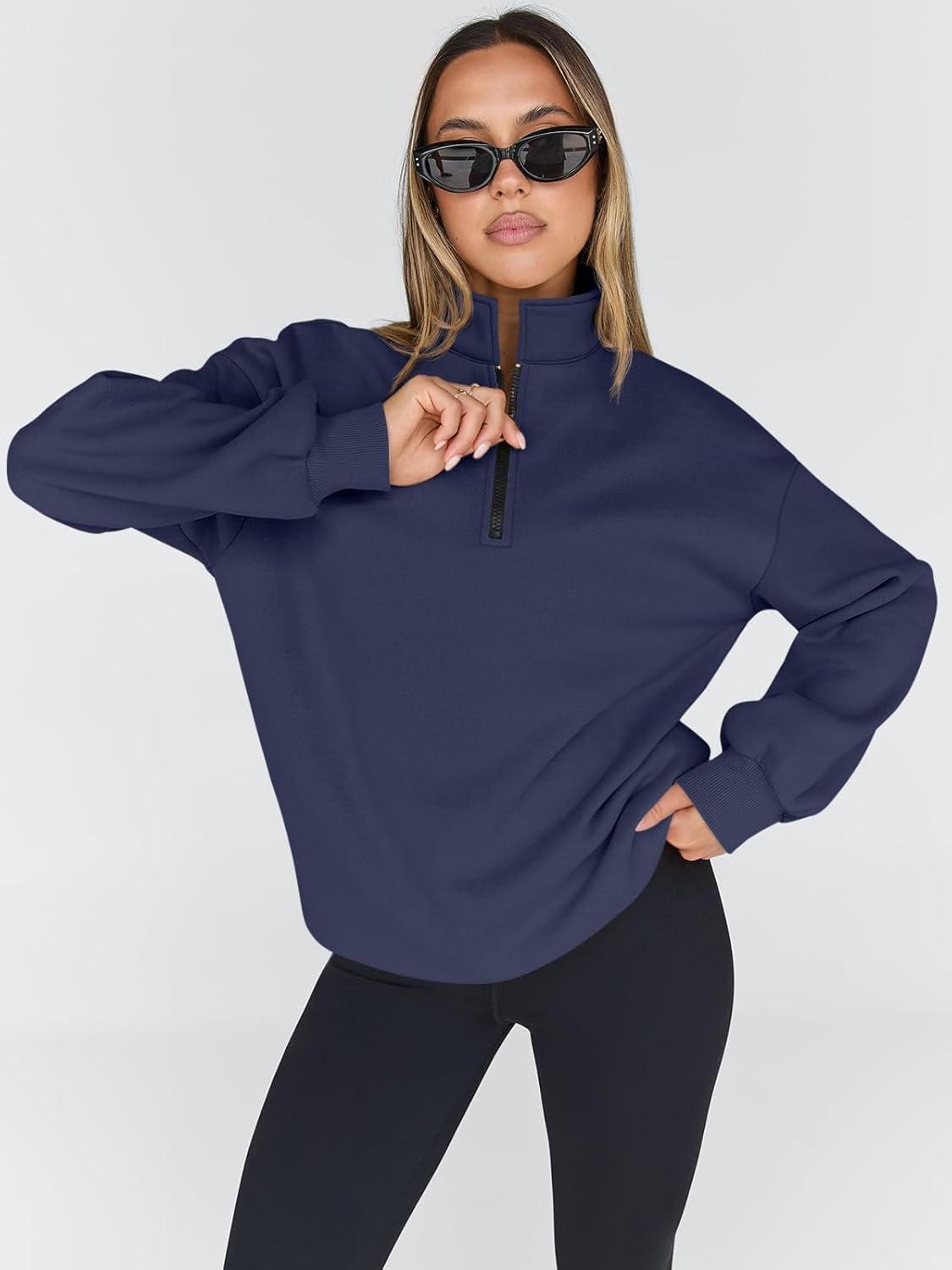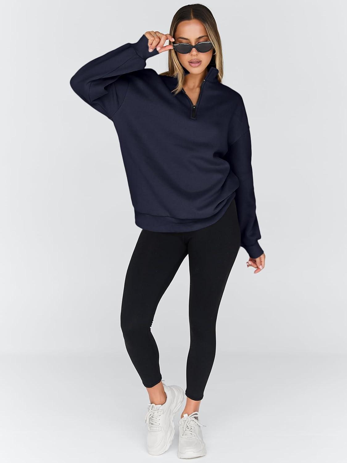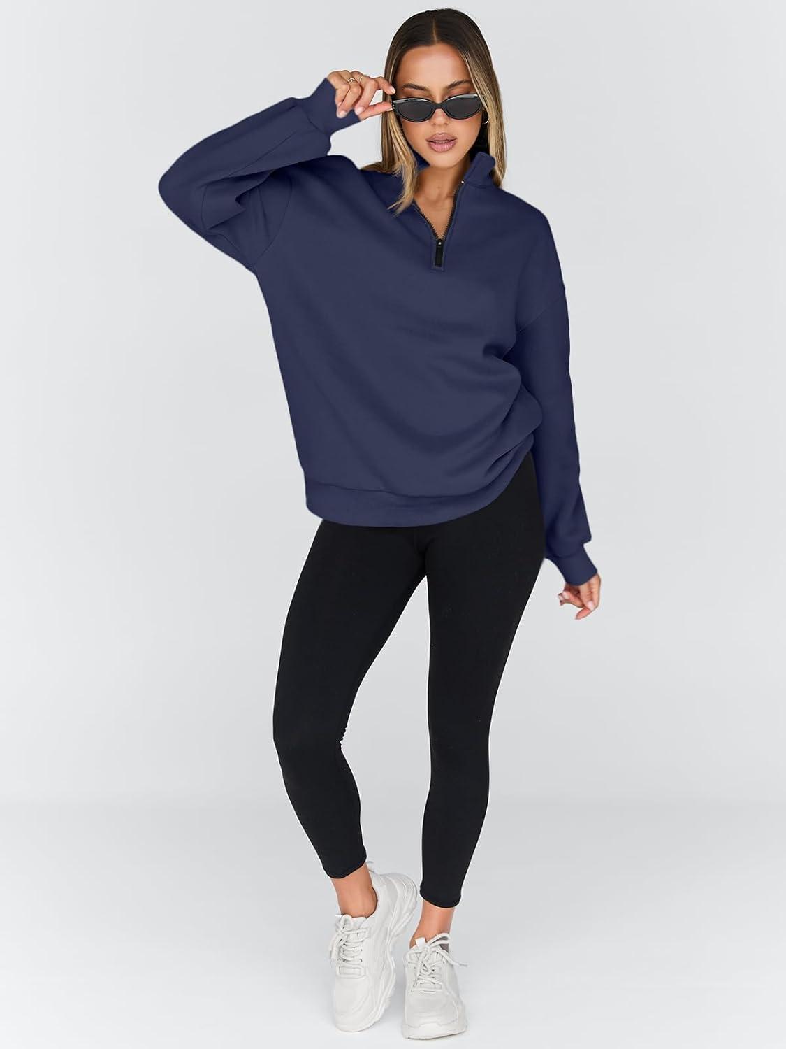 Trendy Queen Womens Oversized Sweatshirts Fall Sweaters Fashion Hoodies Half Zip Pullover Long Sleeve Shirts Clothes(Darkblue)