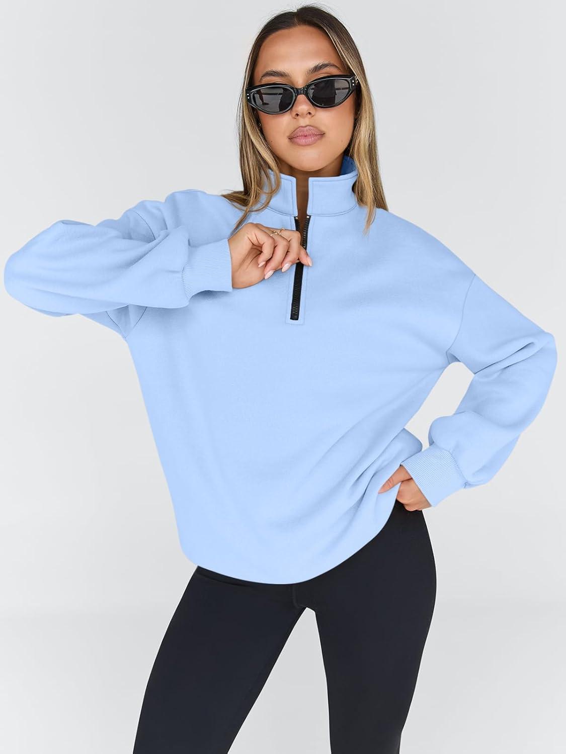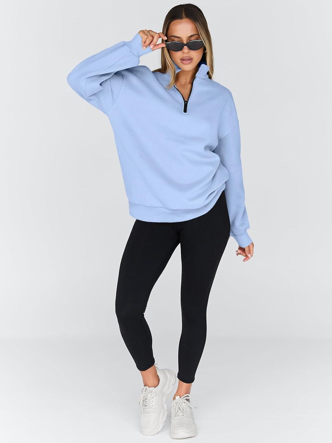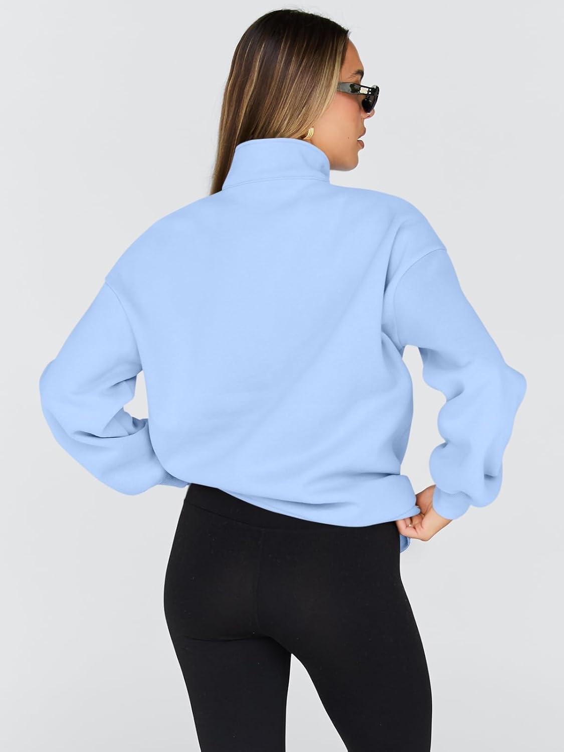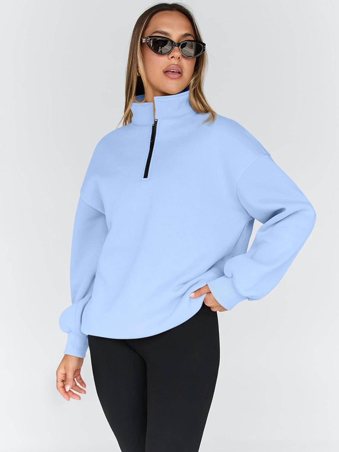 Trendy Queen Womens Oversized Sweatshirts Fall Sweaters Fashion Hoodies Half Zip Pullover Long Sleeve Shirts Clothes(Lightblue)
