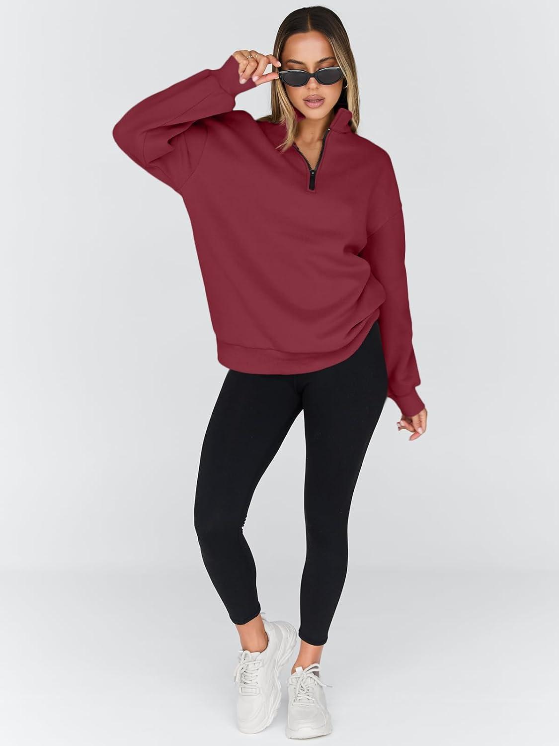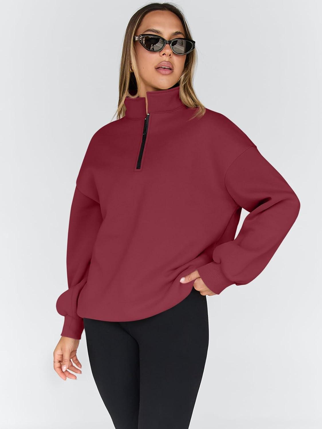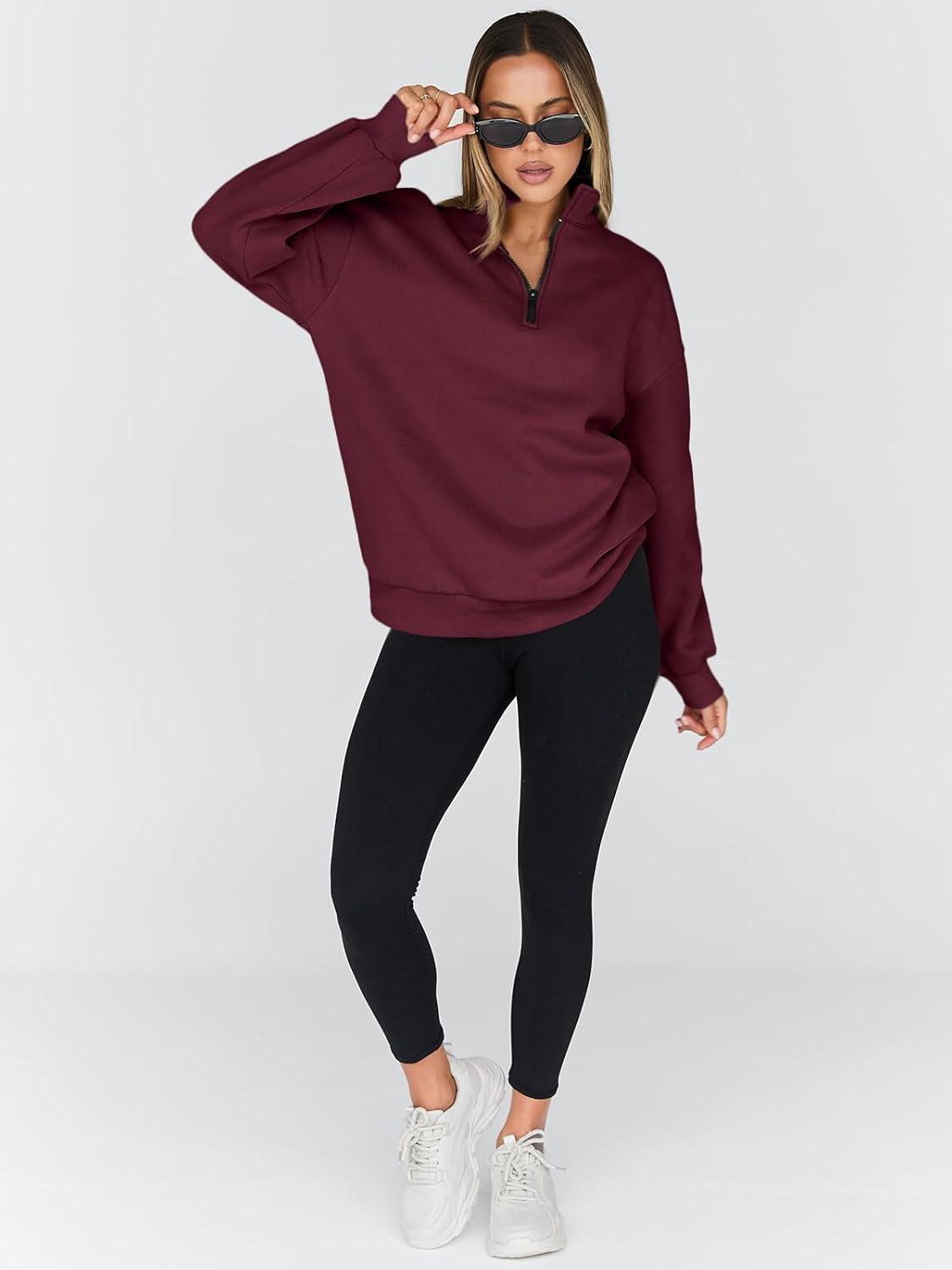Trendy Queen Womens Oversized Sweatshirts Fall Sweaters Fashion Hoodies Half Zip Pullover Long Sleeve Shirts Clothes(Winered)
