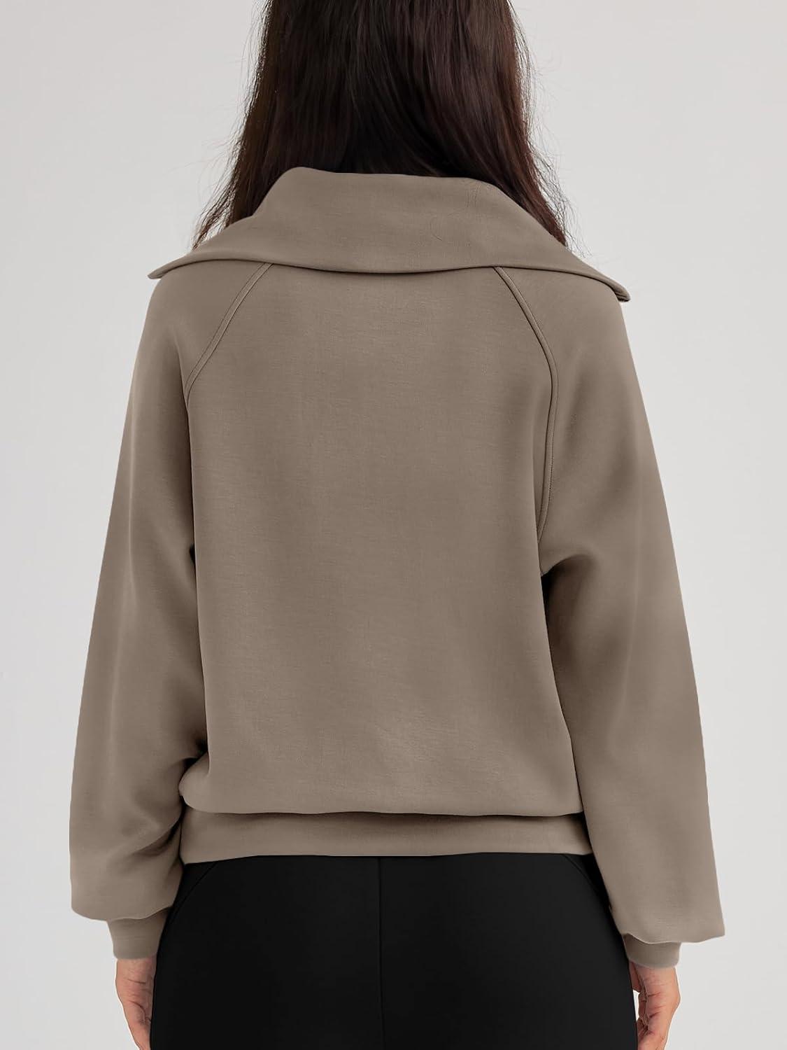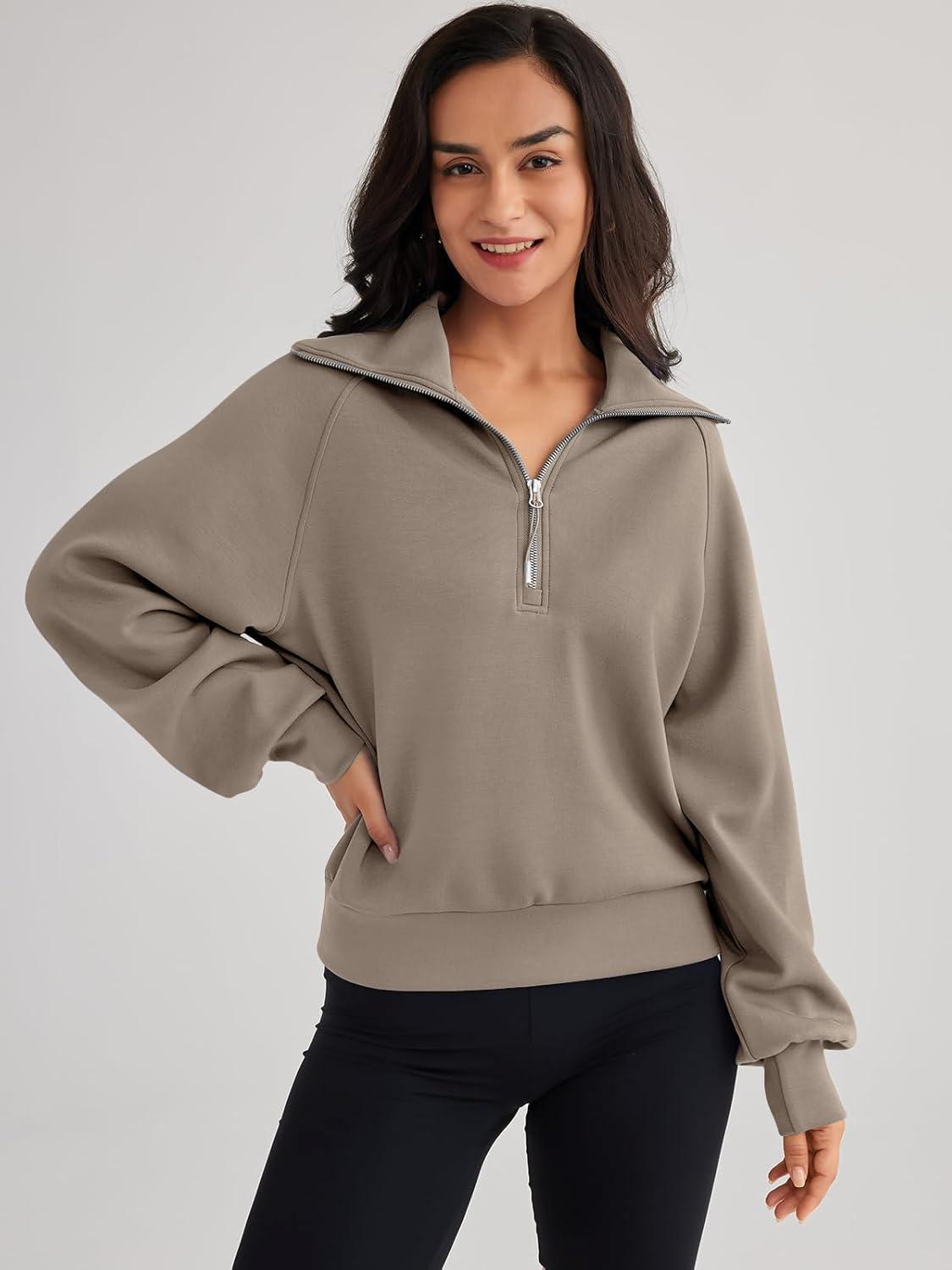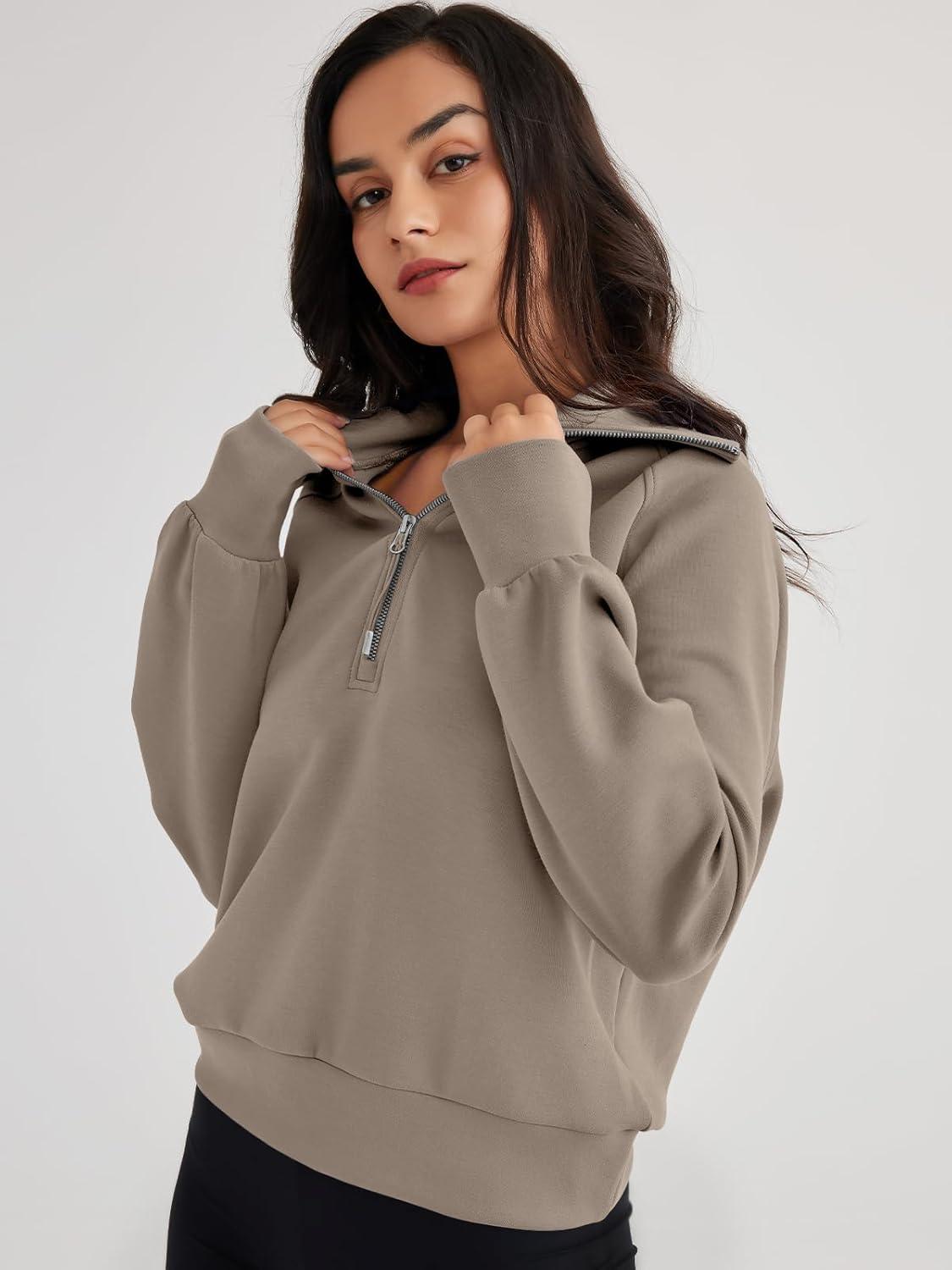 Womens half zip up hoodies teen girl school outfits fleece quarter zip oversized cropped sweatshirts fall fashion winter clothes trendy sweaters travel clothing
