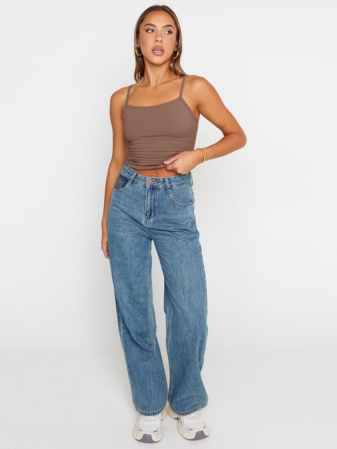 Trendy Queen Womens Summer Camisole Sleeveless Square Neck Spaghetti Strap Tank Tops Basic Shirt(Dark Grey)