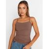 Trendy Queen Womens Summer Camisole Sleeveless Square Neck Spaghetti Strap Tank Tops Basic Shirt(Brown)
