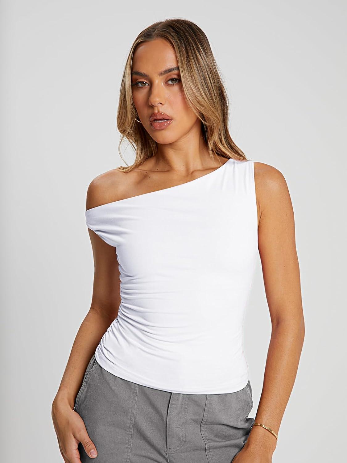Trendy Queen Womens Summer Off The Shoulder Tops Going Out T Shirts Crop Tank Top Fashion Clothes Spring Outfits 2025(White)
