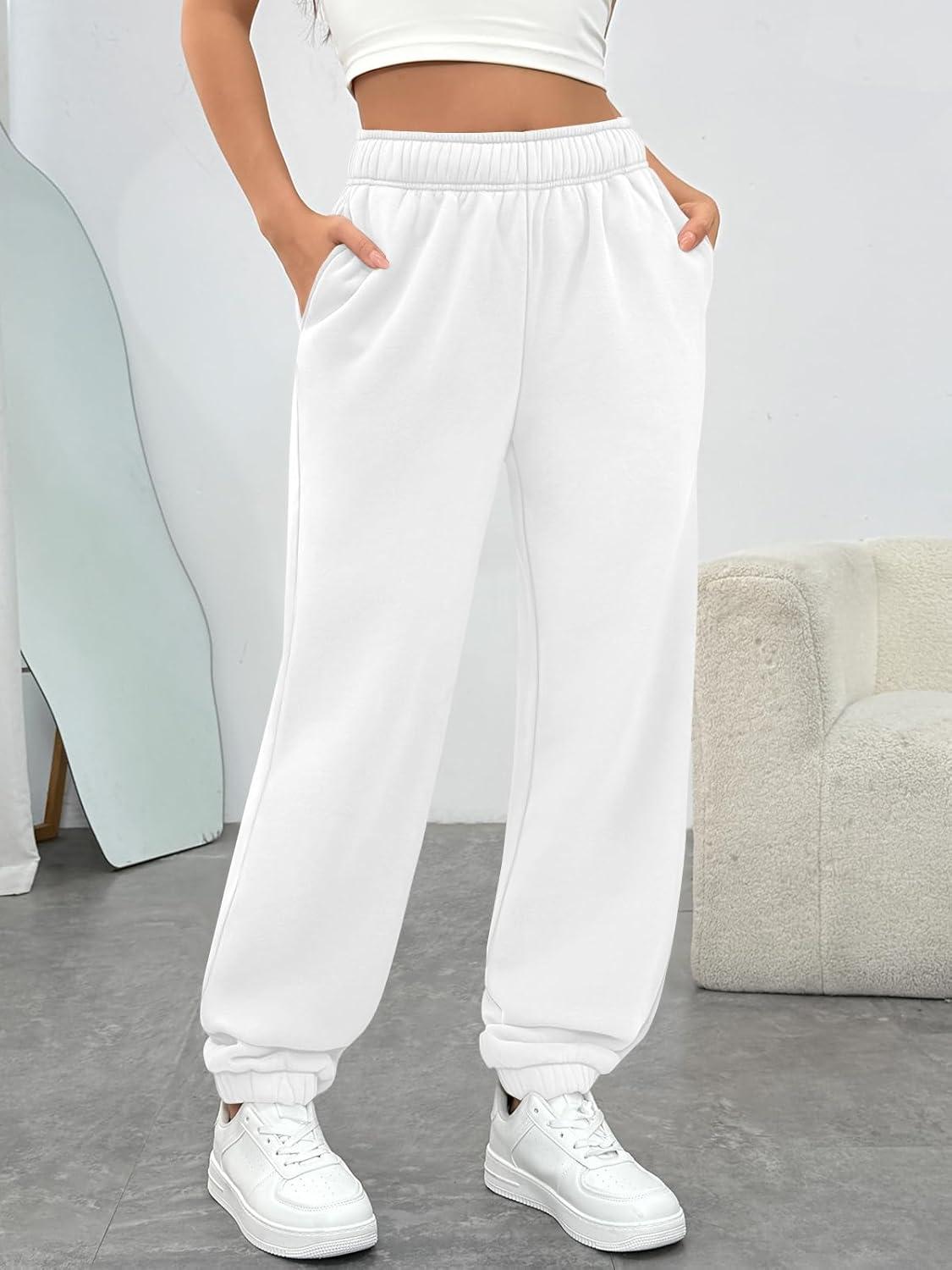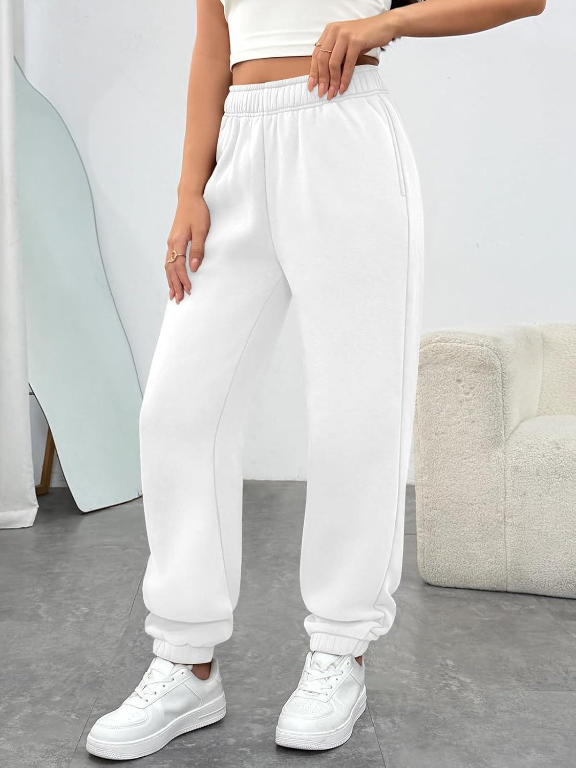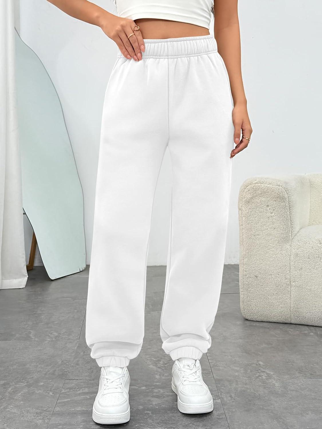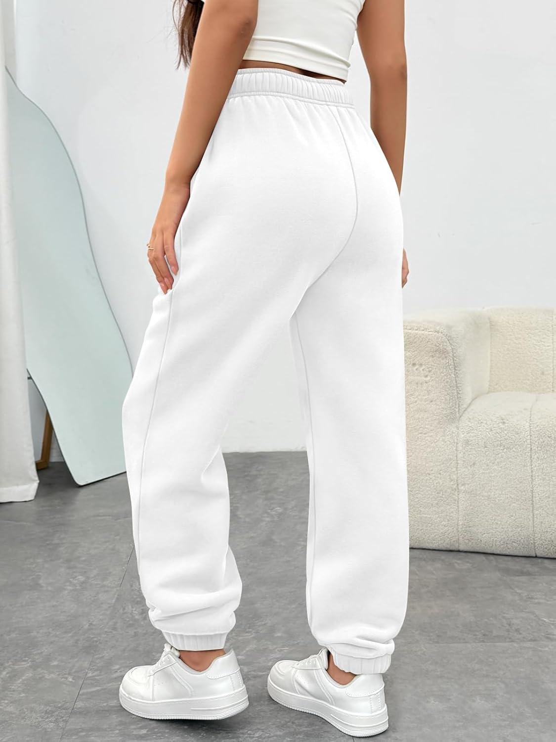 Trendy Queen Womens Sweatpants High Waisted Winter Baggy Lounge Pants Fall Active Fleece Comfy Joggers 2025(White)