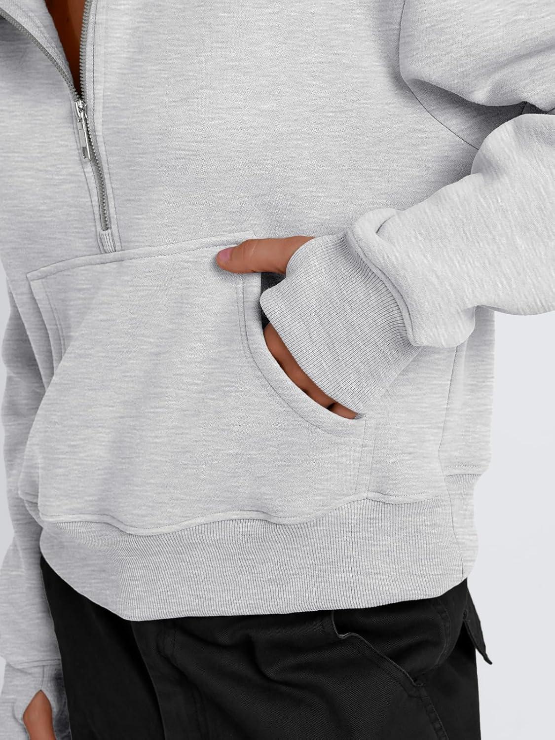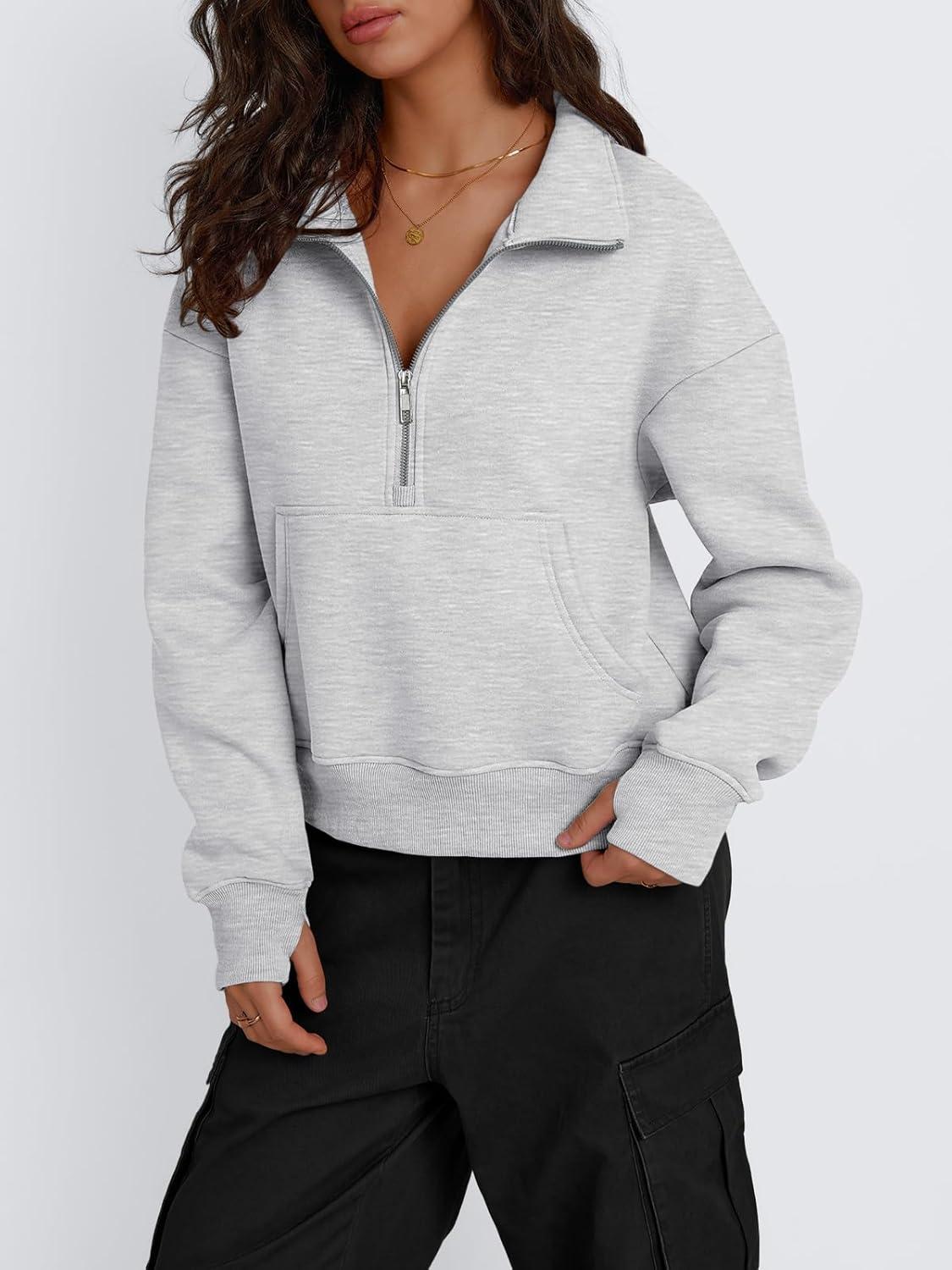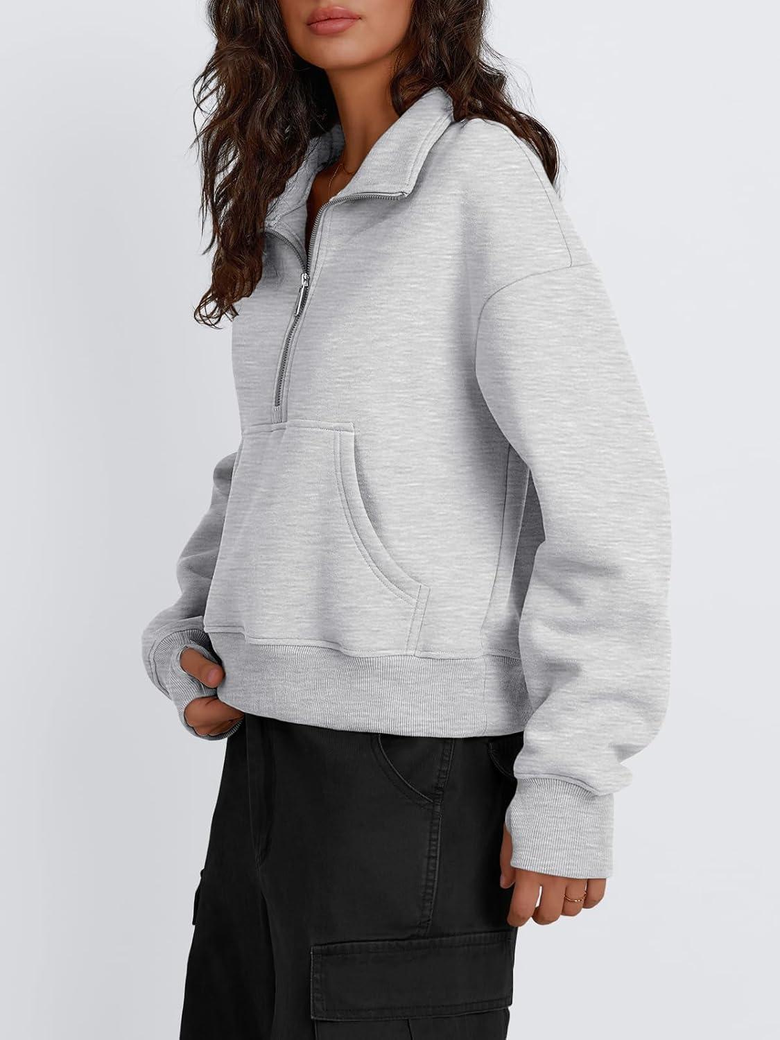 Get your hands on our newest Trendy Queen Womens Sweatshirts Quarter Zip Pullover Oversized Cropped Sweater Fall Winter Hoodies(Grey) and enjoy a limited-time discount offer.